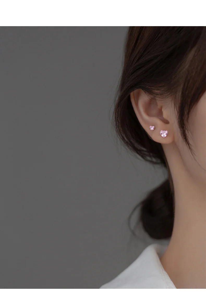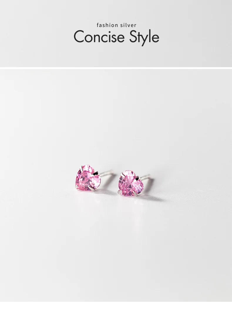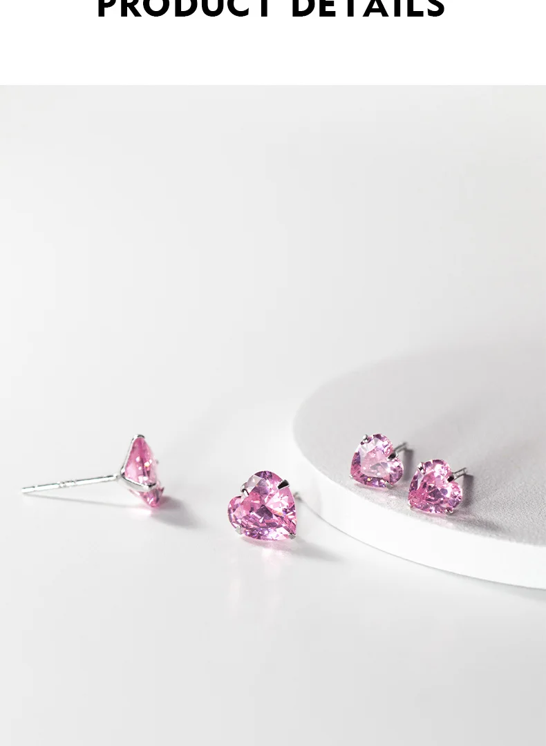 TrustDavis Real 925 Sterling Silver Earrings Cute Pink Heart Charm Shiny CZ Stud Earrings for Women Kids Teen Jewelry DS3731