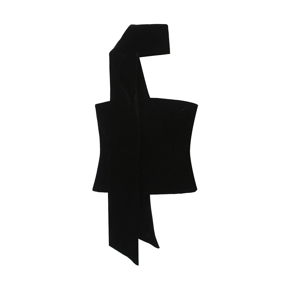 TRZA Women Sexy Fashion With Scarf Strapless Bustier Tops Straight Neck Side Zipper Female Camis Mujer
