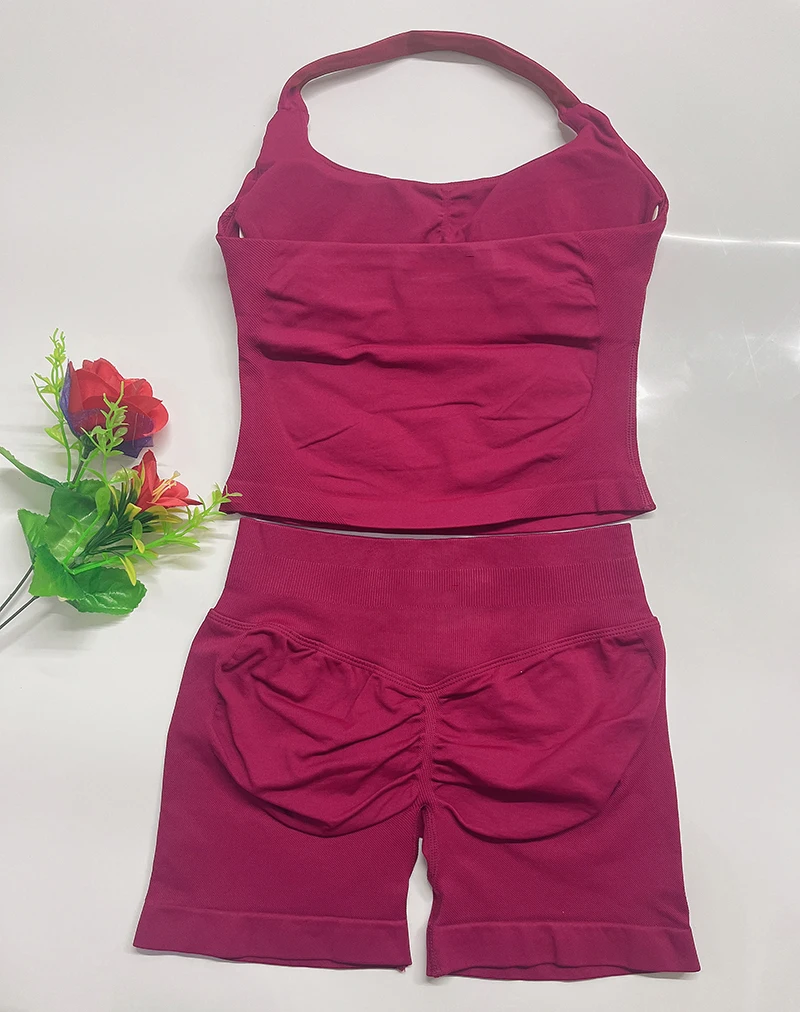 two piece DF yoga clothing set outfits woman yoga Impact Halter Top and spors shorts 4.5 inch Gym workout sets pilates clothes