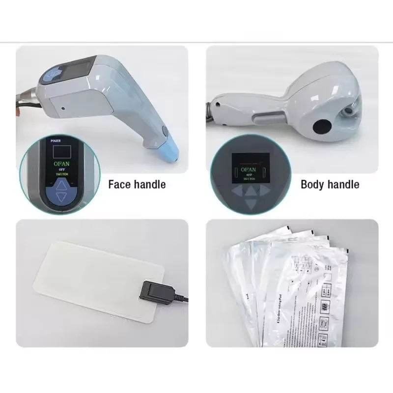 2 operating handles: one for facial treatment, the other for body. Screen displays temperature, working time, etc. Handle temperature can reach 40°C, according to experimental data and reports show that fat will naturally form metabolic degradation at 40°C.