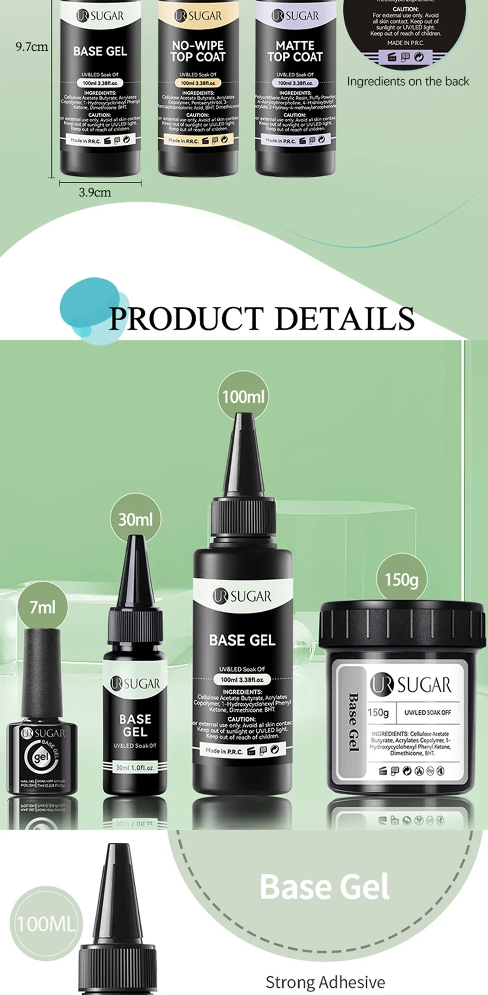 UR SUGAR 100ml Reinforcement Gel Nail Prep Dehydrator Nail Art Soak Off UV LED Base Gel No Wipe Top Coat Varnish Manicure