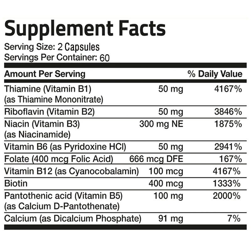 Vitamin B Complex Capsules - Replenish Energy, Relieve Stress, Improve Digestion, and Enhance Immunity