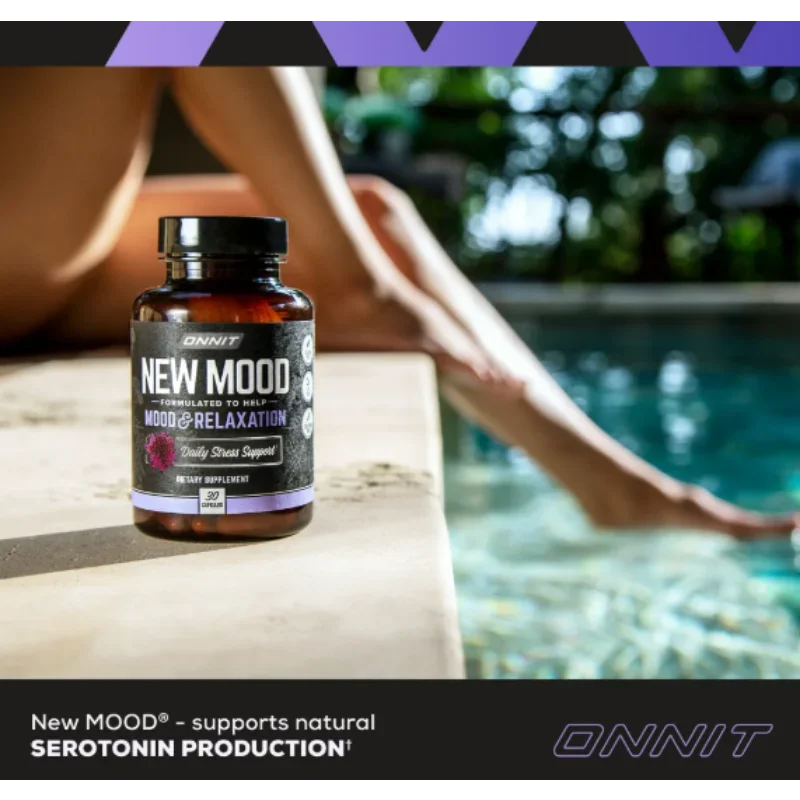 Mood and relaxation support supplement designed to help improve daily mood and relaxation, helping the body produce serotonin, a key neurotransmitter associated with positive mood, helps relieve stress,