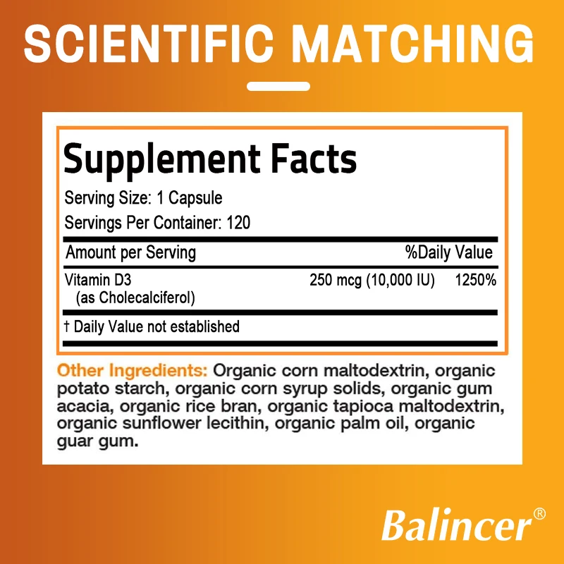 Vitamin D3 10000 IU for Immune Support Healthy Muscle Function and Bone Health High Potency Organic Non-GMO Vitamin D Supplement