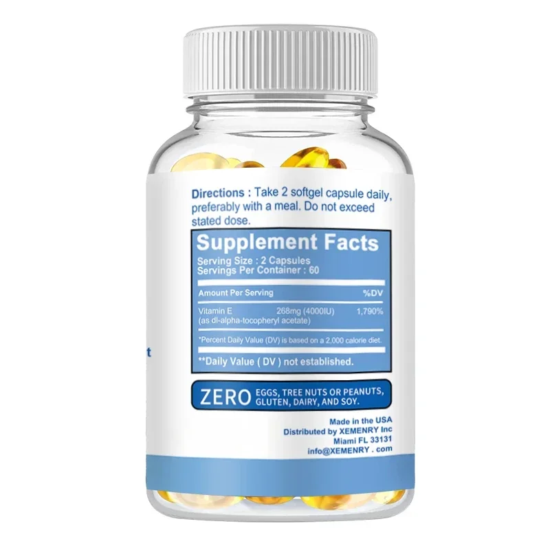 This vitamin E supplement provides 4000 IU of vitamin E per serving.