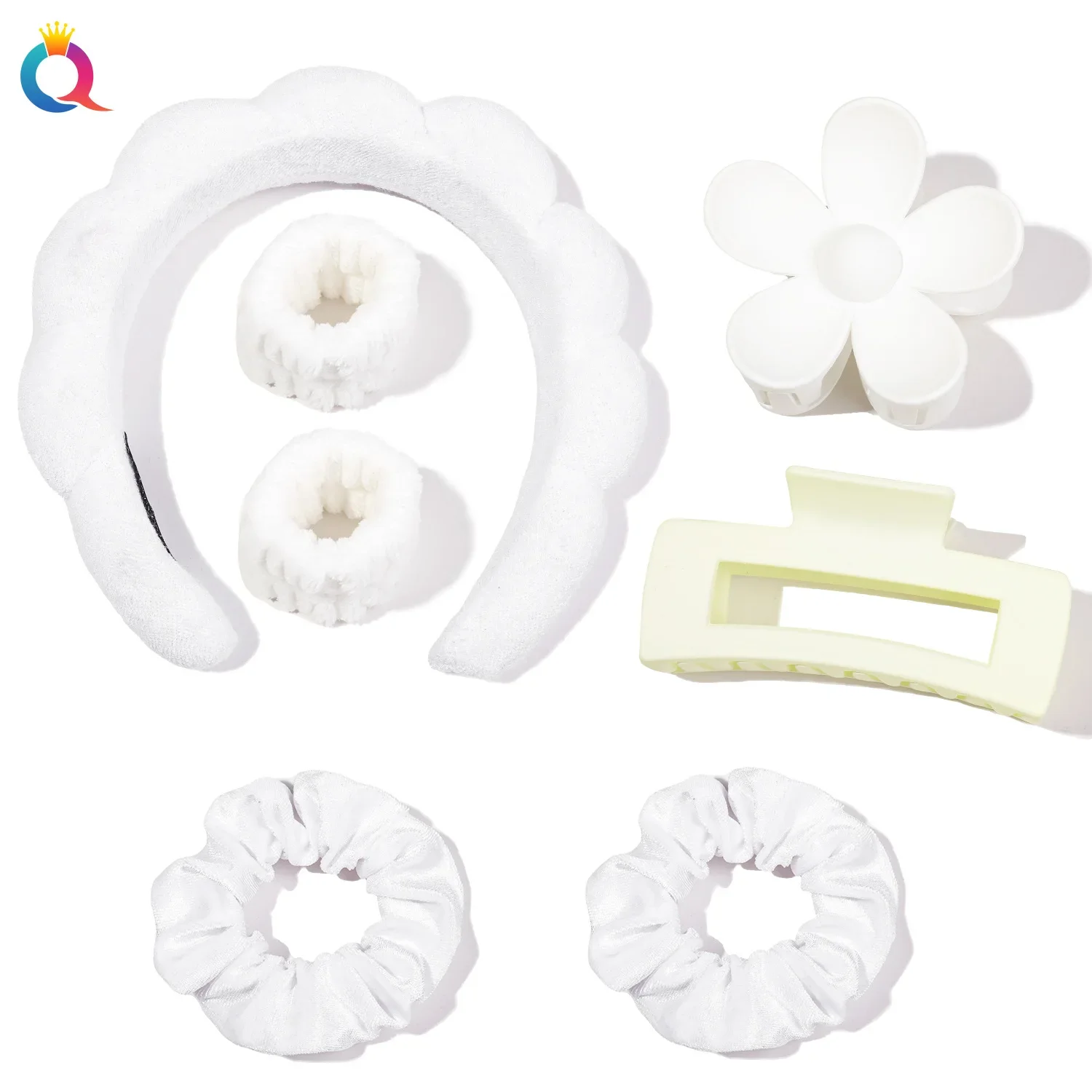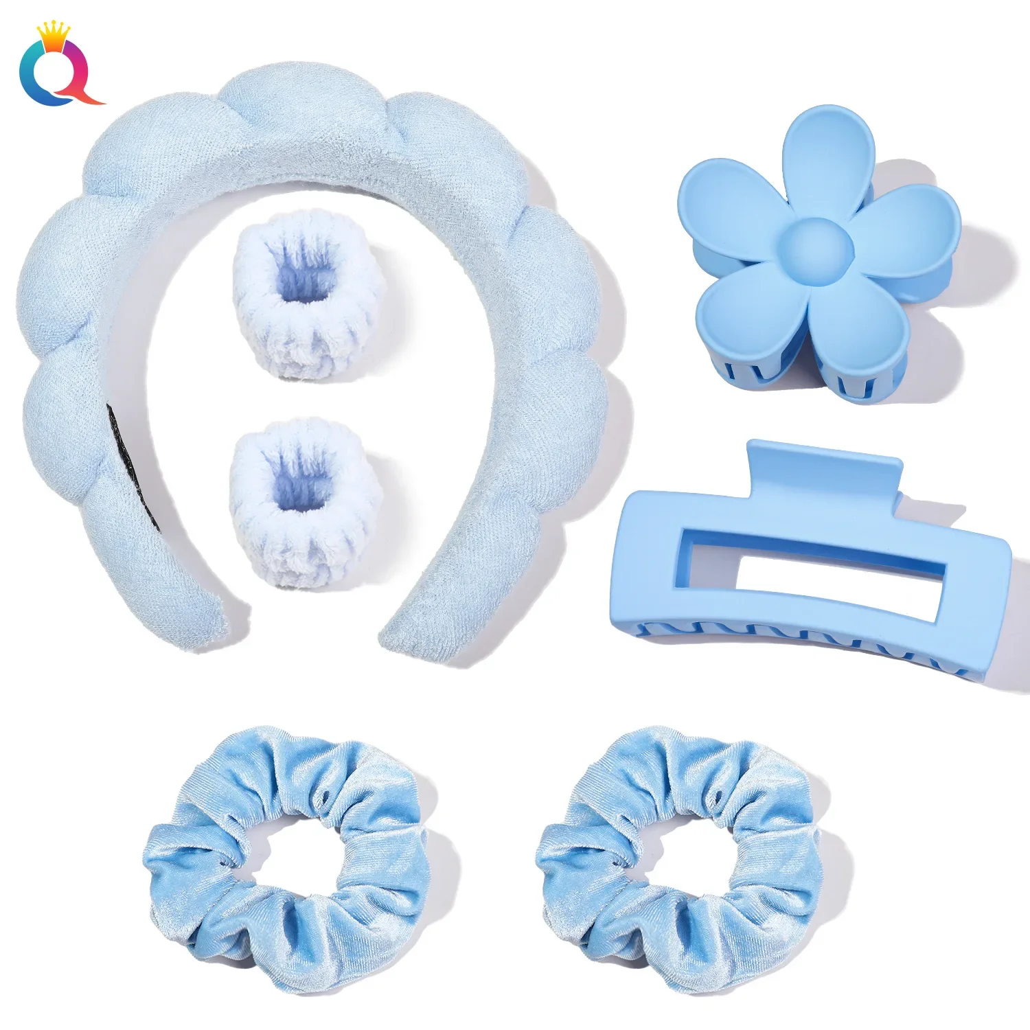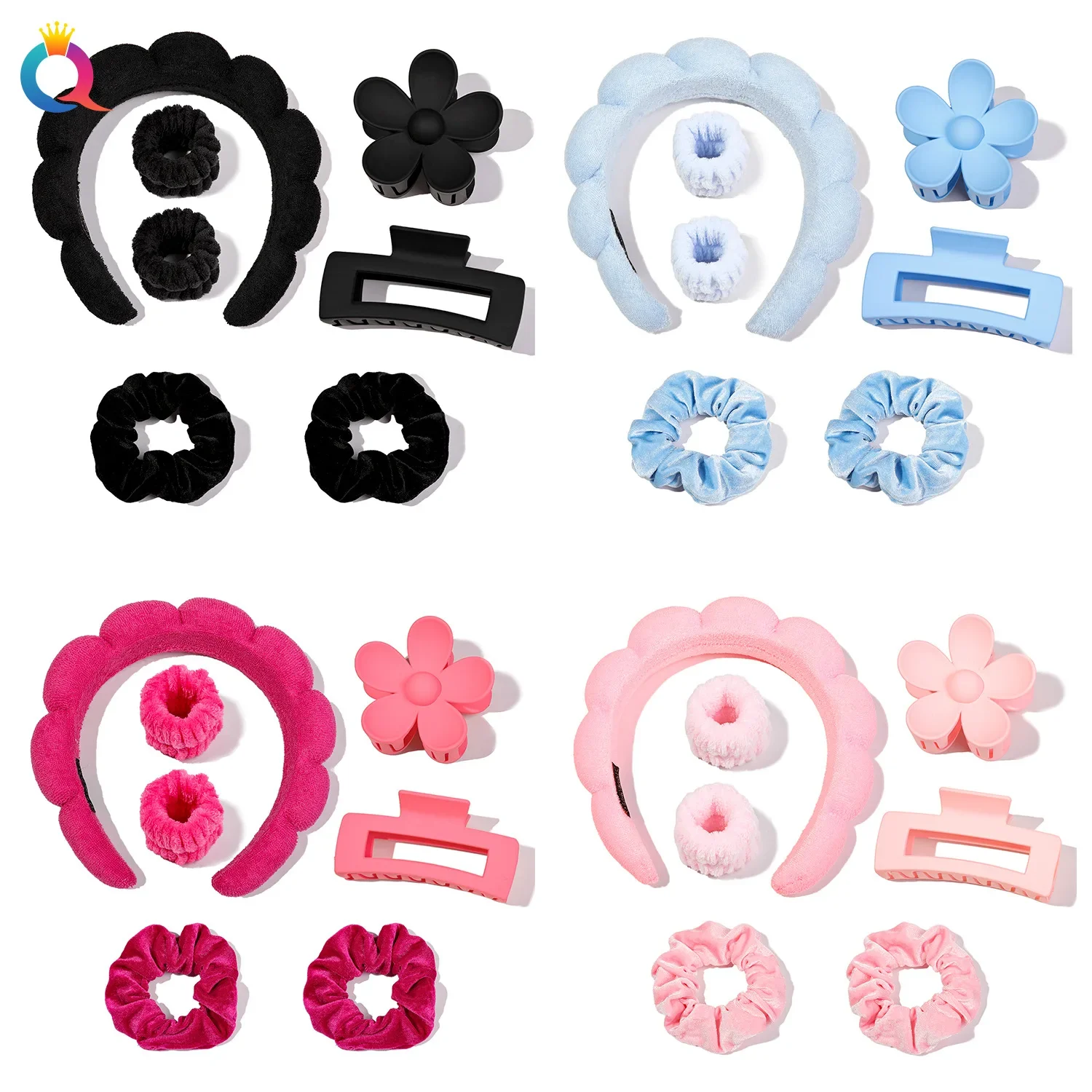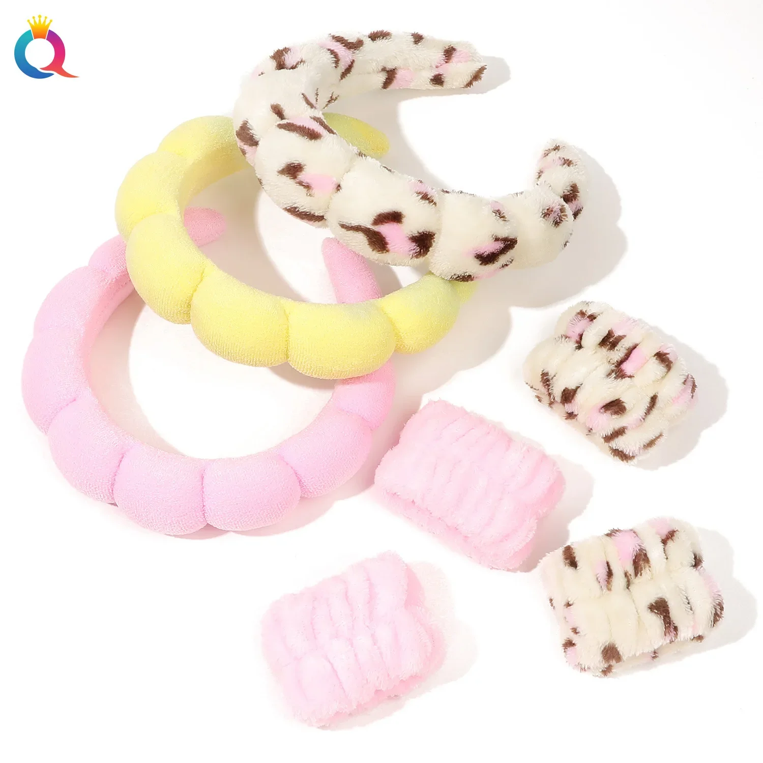 Wash Face Headbands For Women Puffy Sponge Hair Bands Cuff Waterproof Bands Absorbent Wristbands Girls Hair Accessories Set
