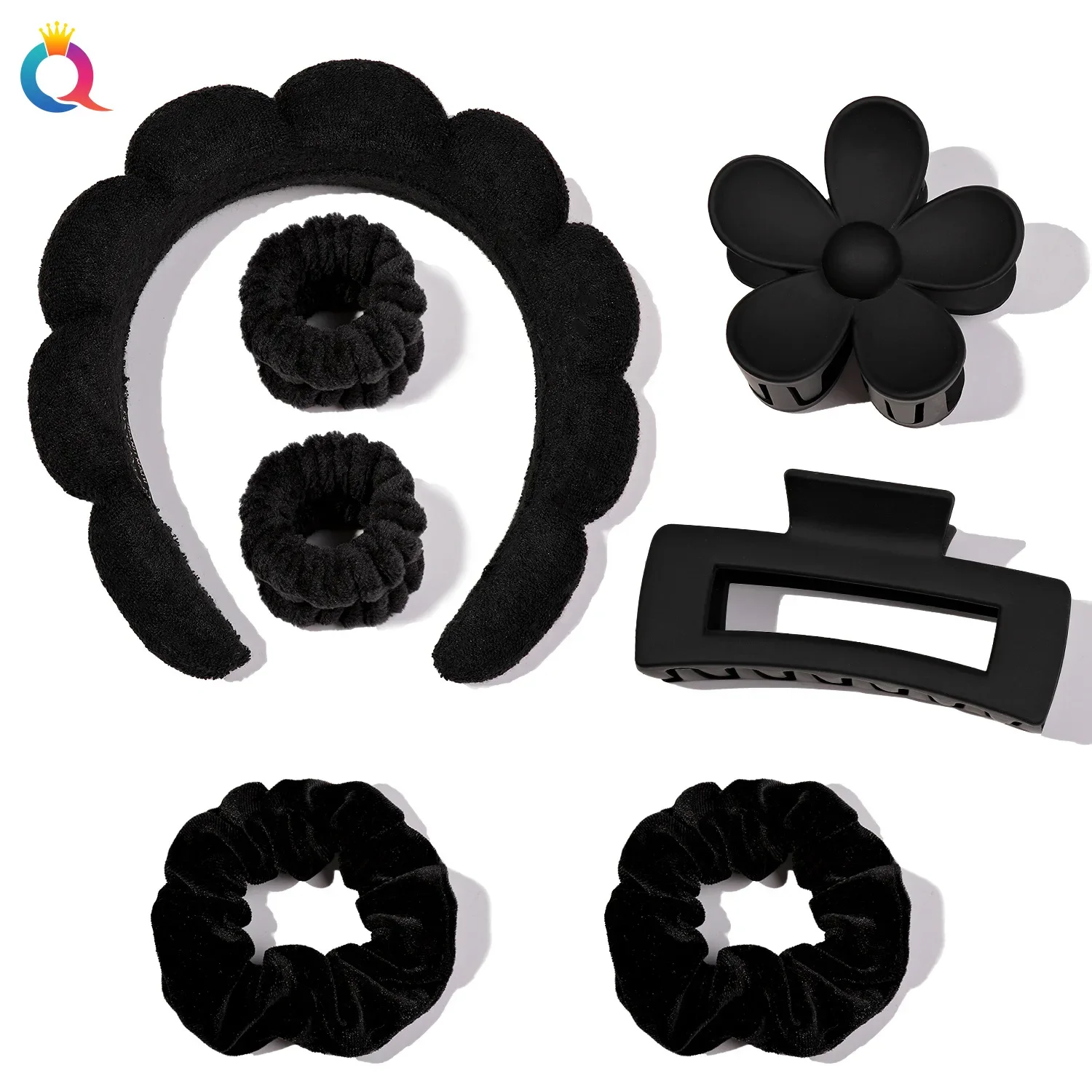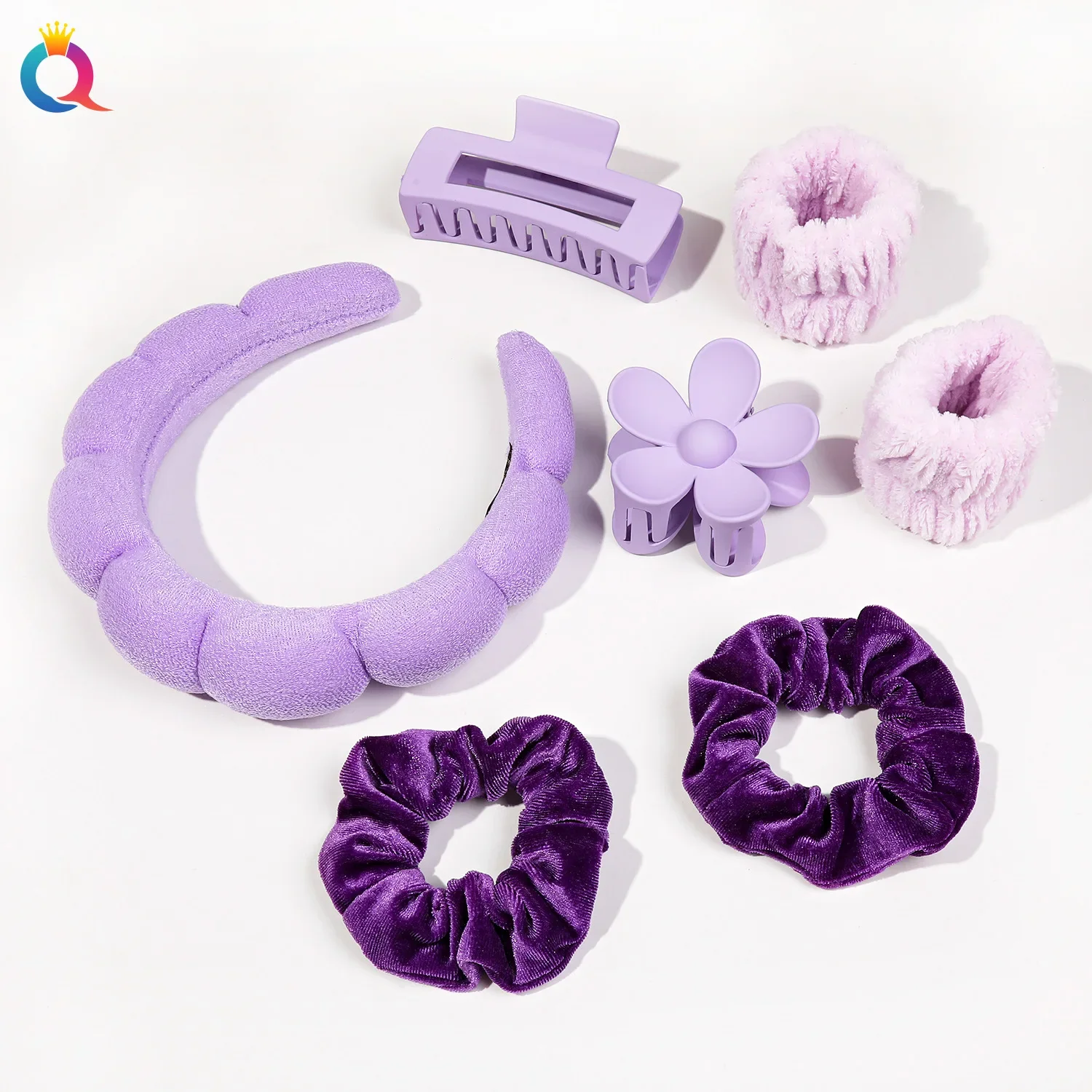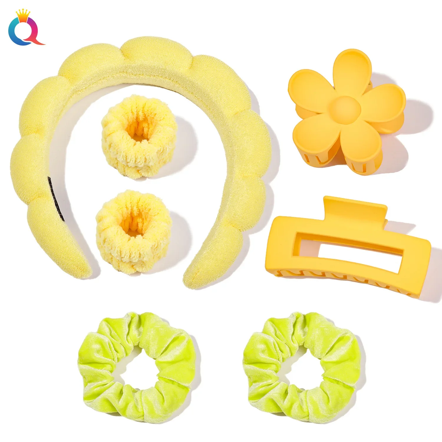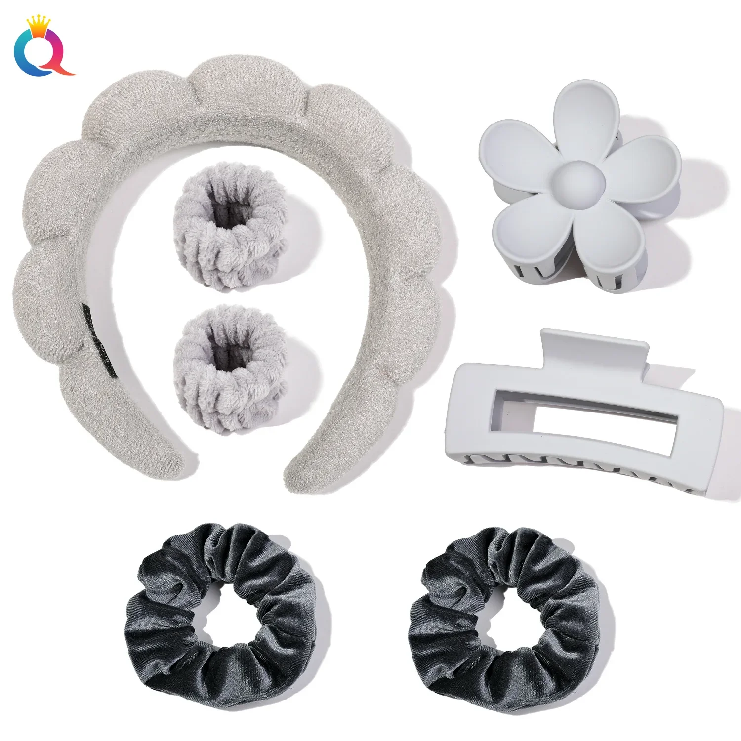 Wash Face Headbands For Women Puffy Sponge Hair Bands Cuff Waterproof Bands Absorbent Wristbands Girls Hair Accessories Set