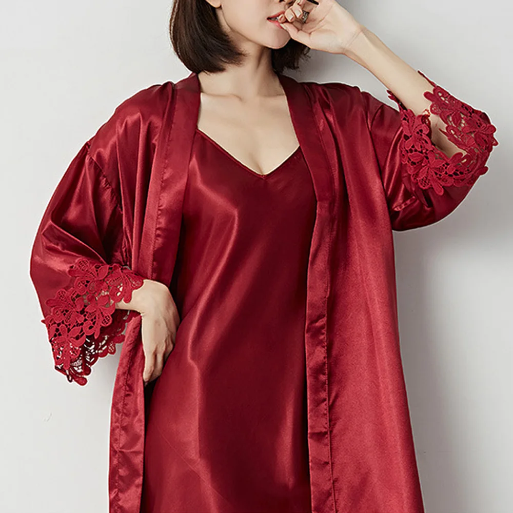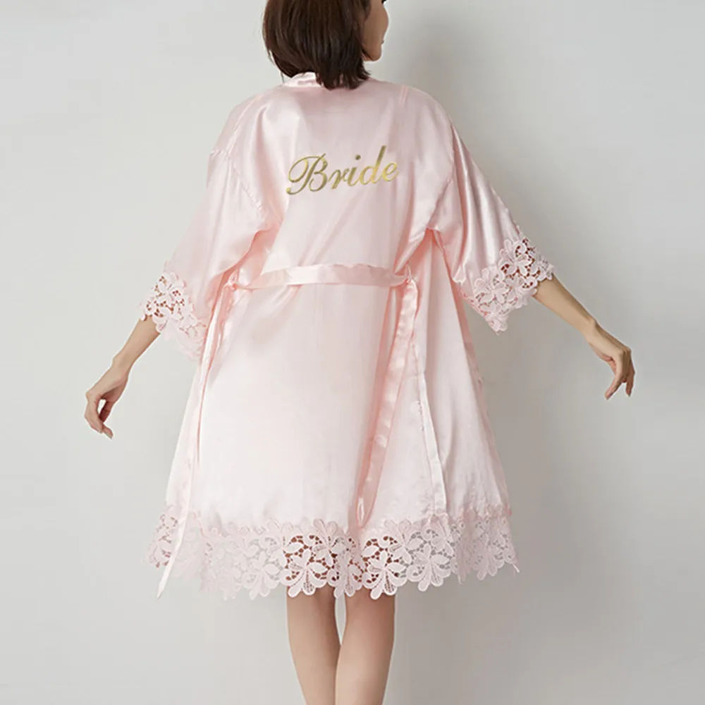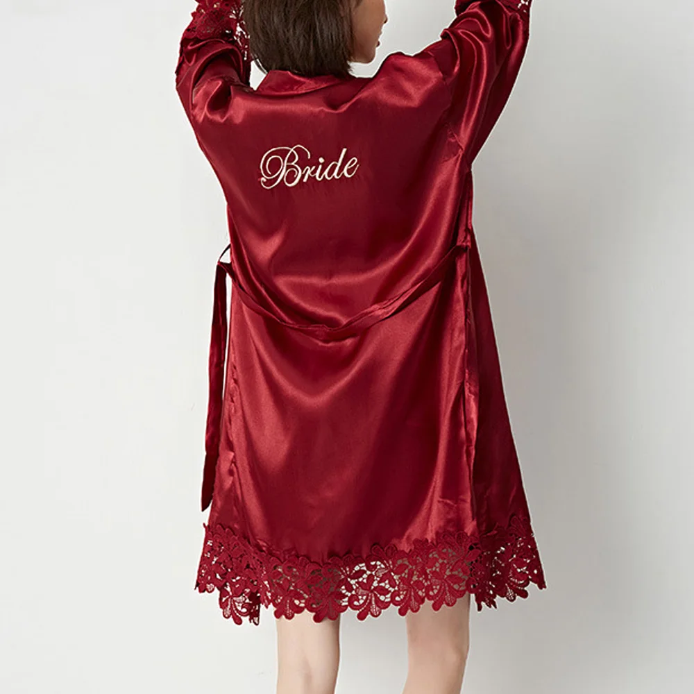 Wedding Embroidery Bride Bridesmaid Kimono Dresses Lace Gown Sexy Women Robes Home Gown Bathrobe Short Night Shirts Sleepwear1PC