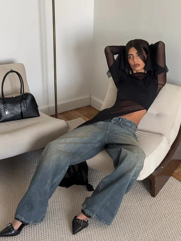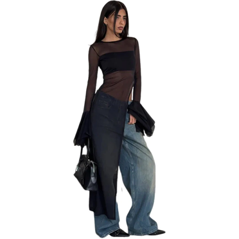 Weird Puss Sexy Irregular Hem T-Shirt Women Patchwork o-Neck Flared Sleeves Summer Midnight Sexy Hottie Fashion Split Long Tops
