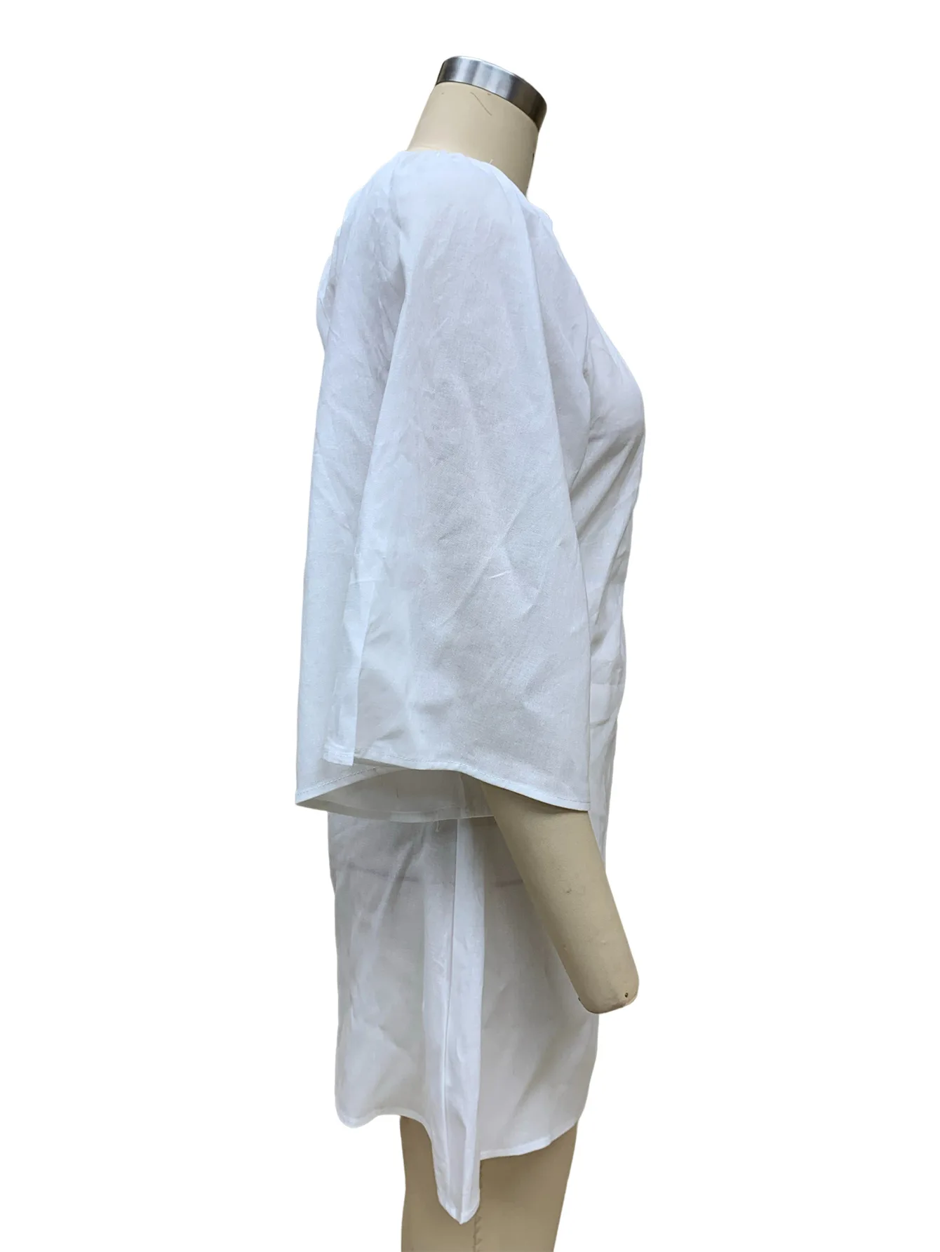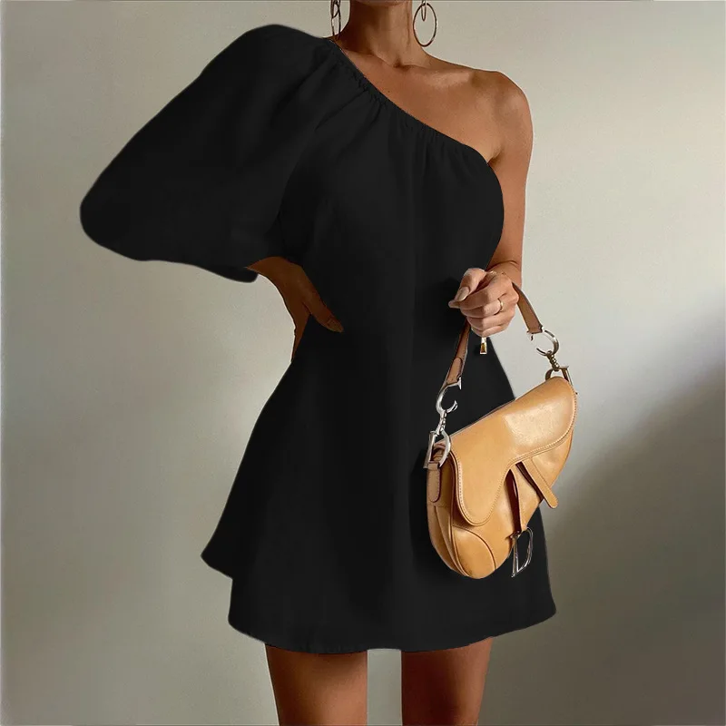 White Oblique Shoulder Cotton Linen Mini Dresses For Women Sexy Black One Shoulder Basic Puff Sleeve Party Club Dress Vestidos