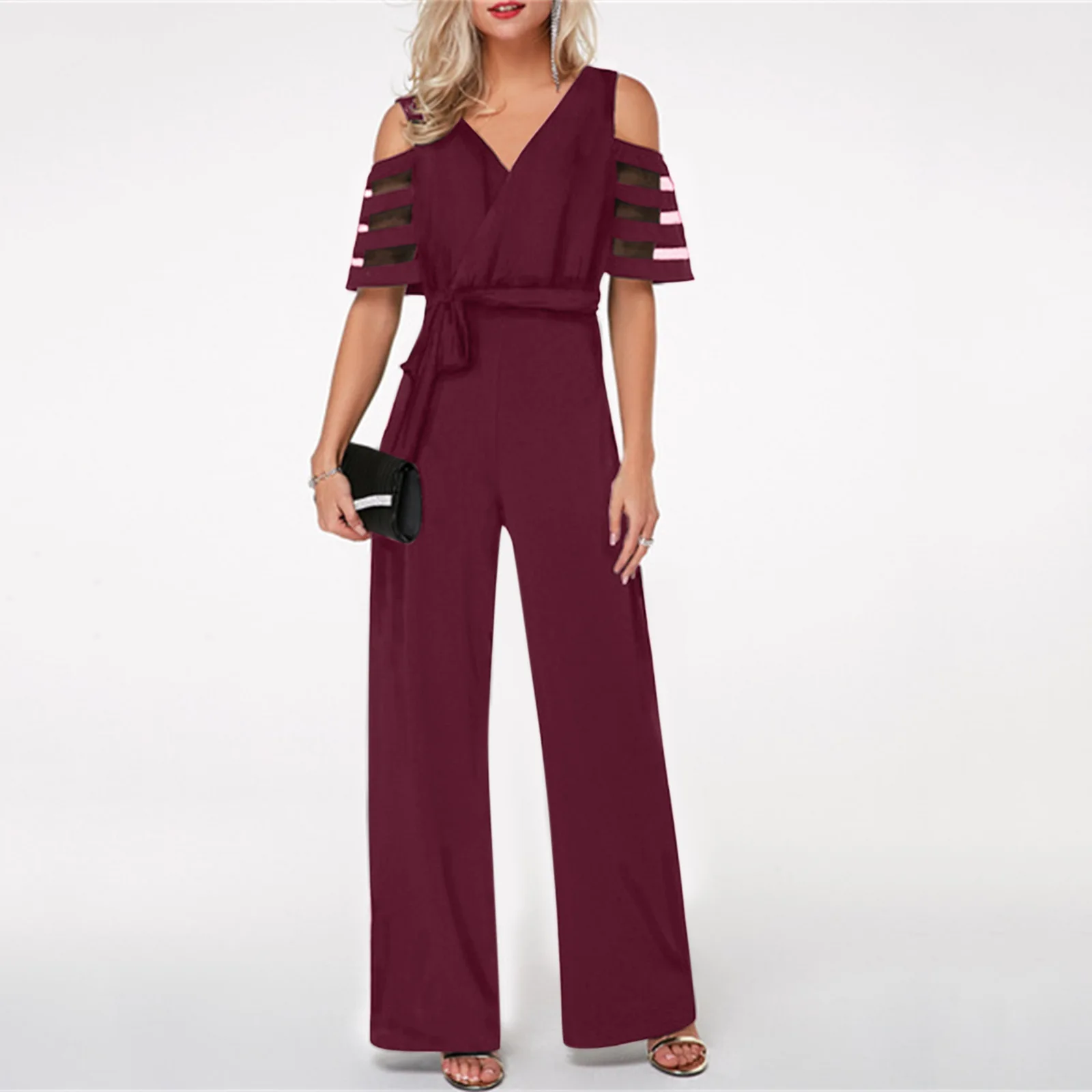 Sexy Elegant New Fashion 2024 Summer Casual Female Clothing Outfits Solid Color Short Sleeved High Waisted Workwear Jumpsuit