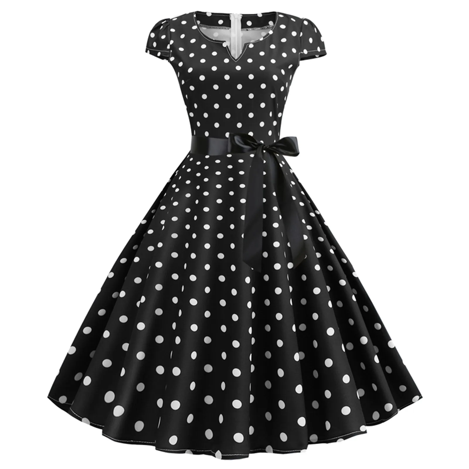 Woman Retro Dresses Audrey Hepburn 1950s 60s Rockabilly Polka Dot Printed Bowknot Pinup Ball Gown Party Dress Robe Vestidos