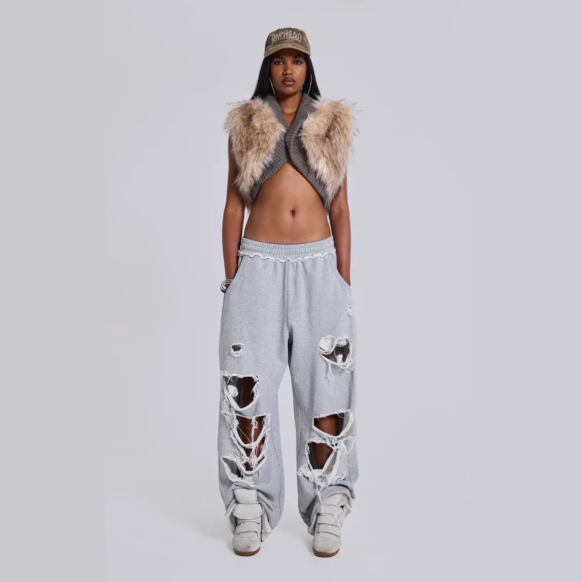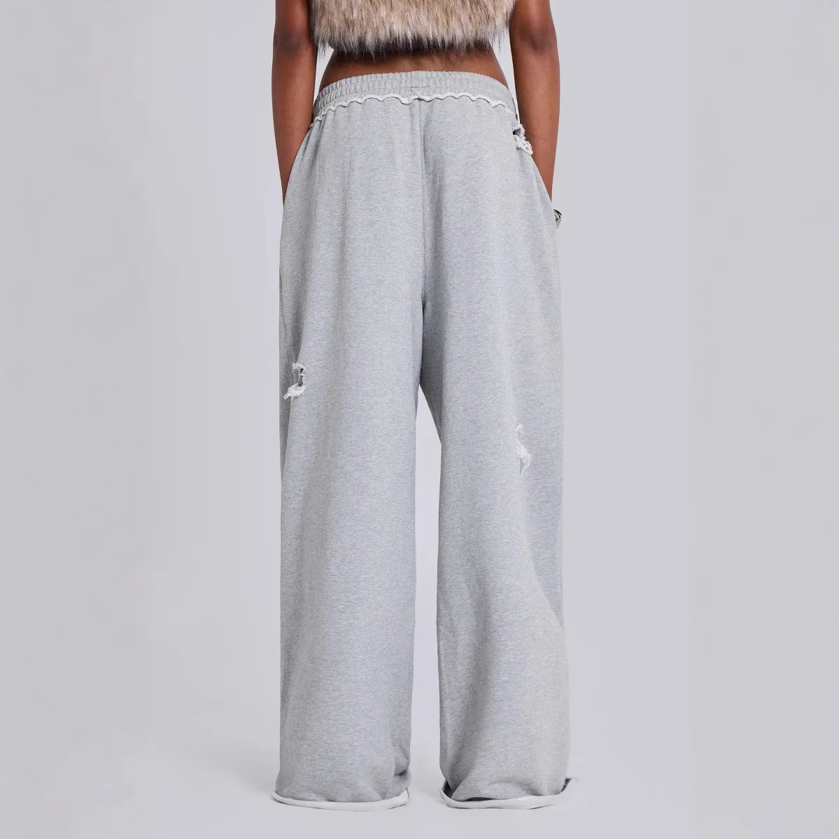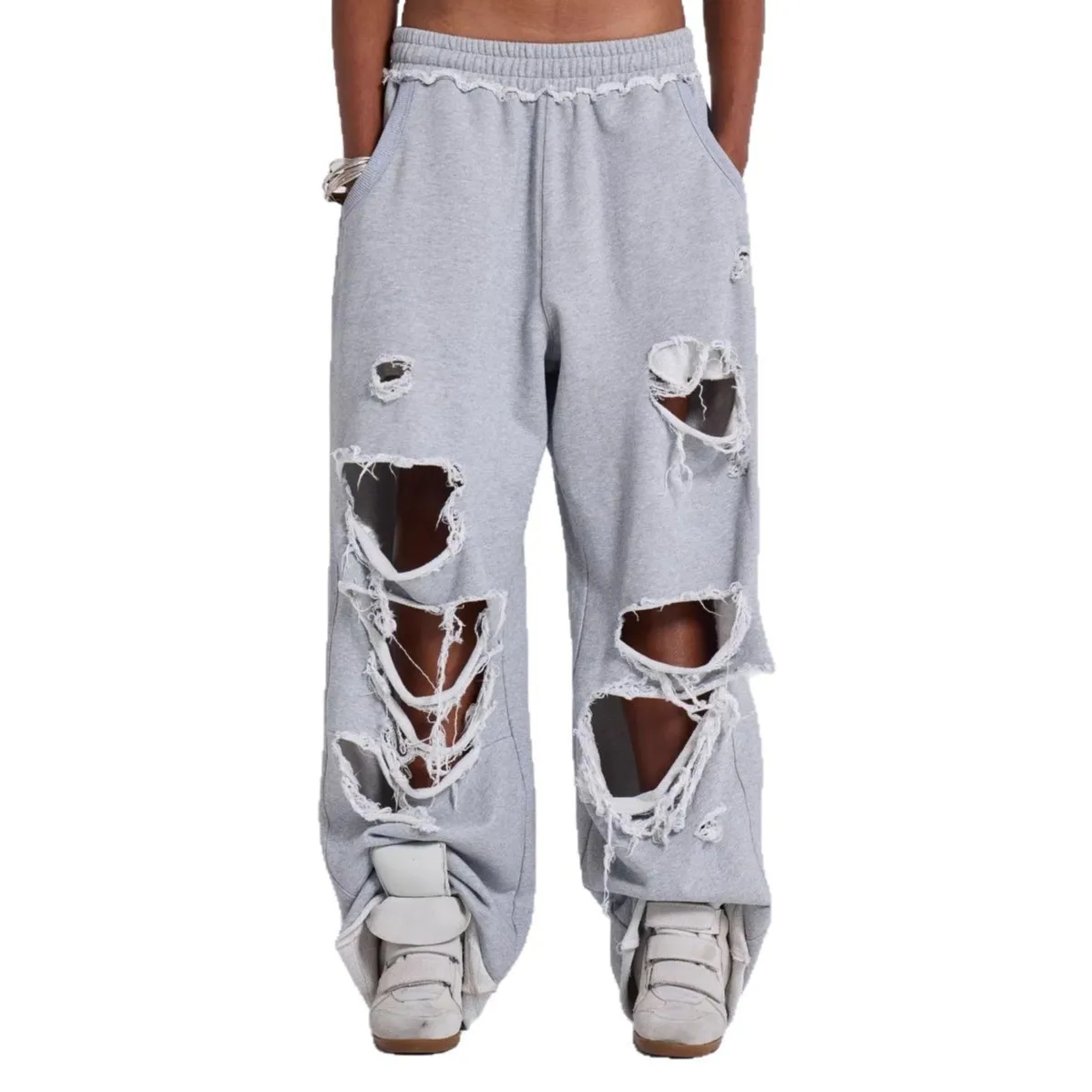 Women Baggy Sweatpants Casual Y2K Hip Hop Grunge Wide Leg Hole Loose Ripped pants Oversized Streetwear Trousers