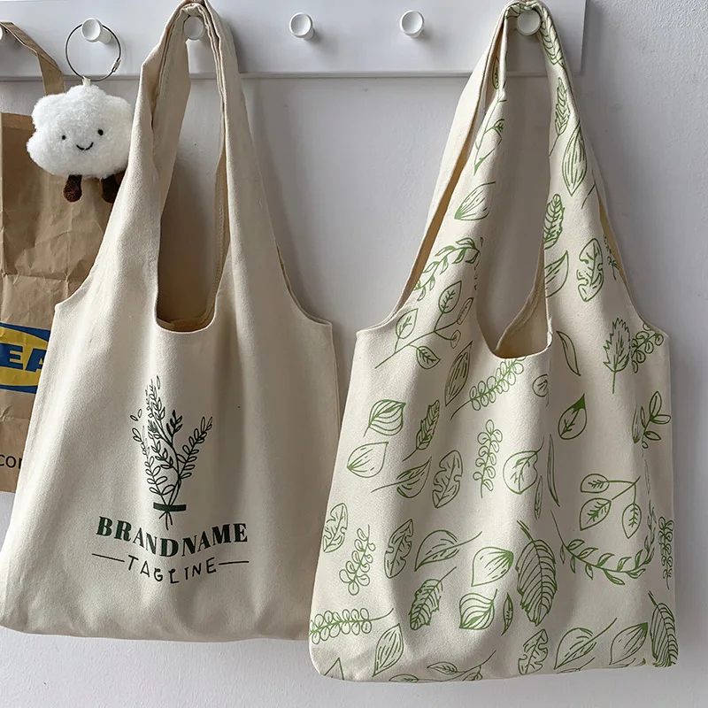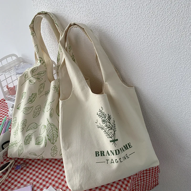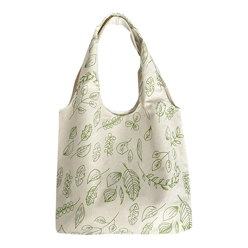 Women Canvas Leaves Flower Tote Shopper Bags Ladies Casual Cotton Cloth Shoulder Bag Eco Reusable Shopping Bag Girl Beach Travel