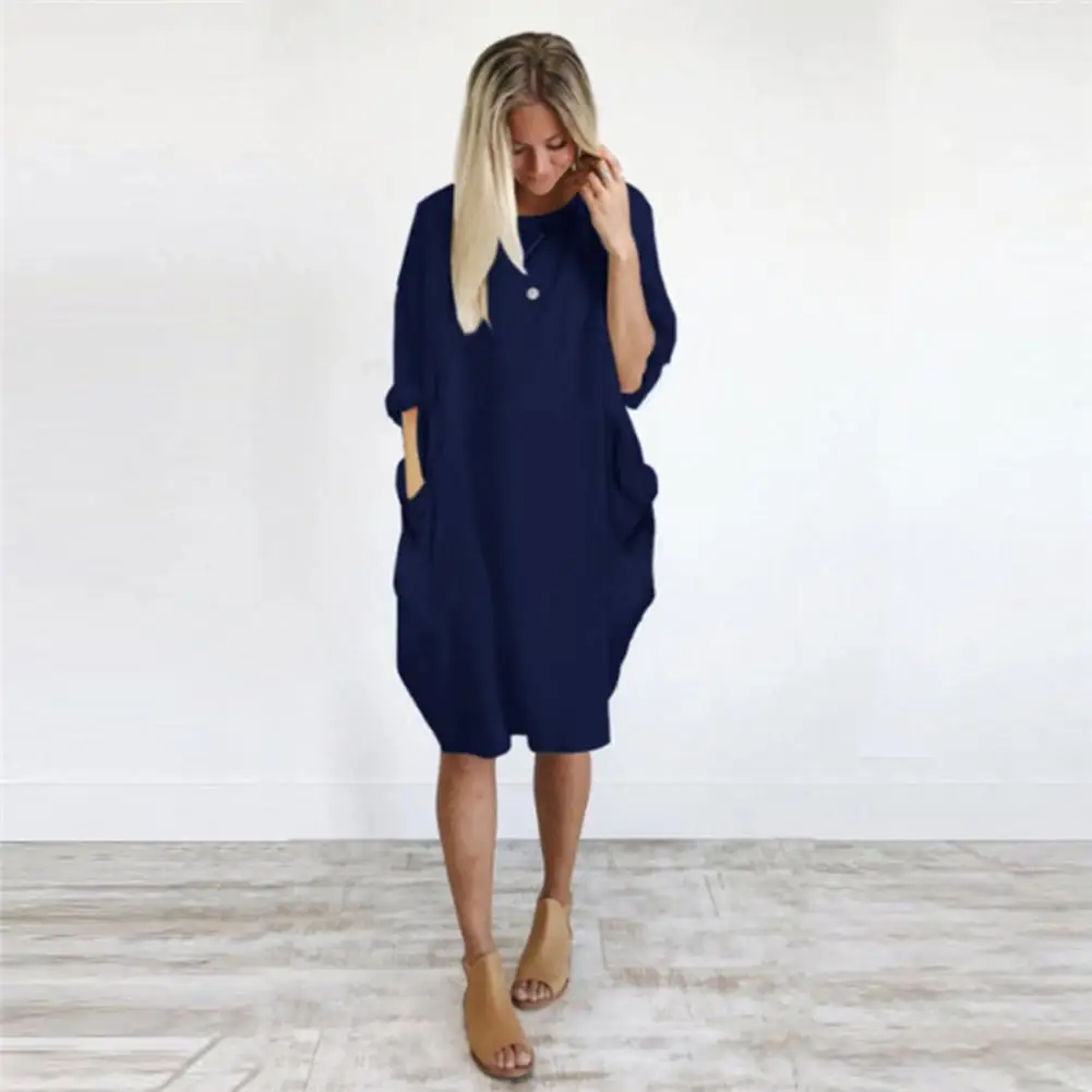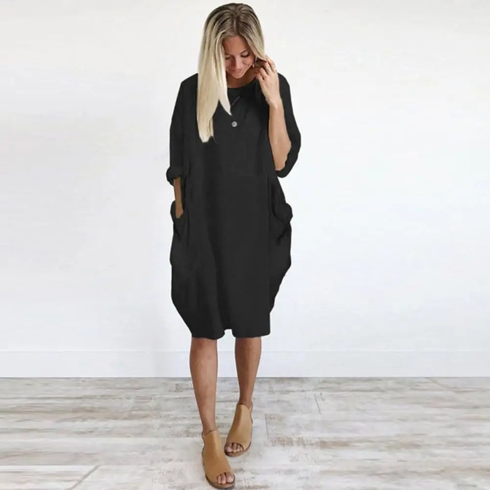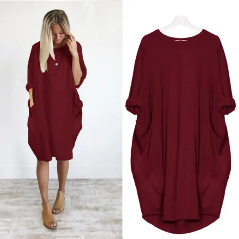 Women Casual Loose Dress with Pocket Fashion Ladies Solid Dress Women's O Neck Long Tops T Shirt Dress Streetwear Plus Size