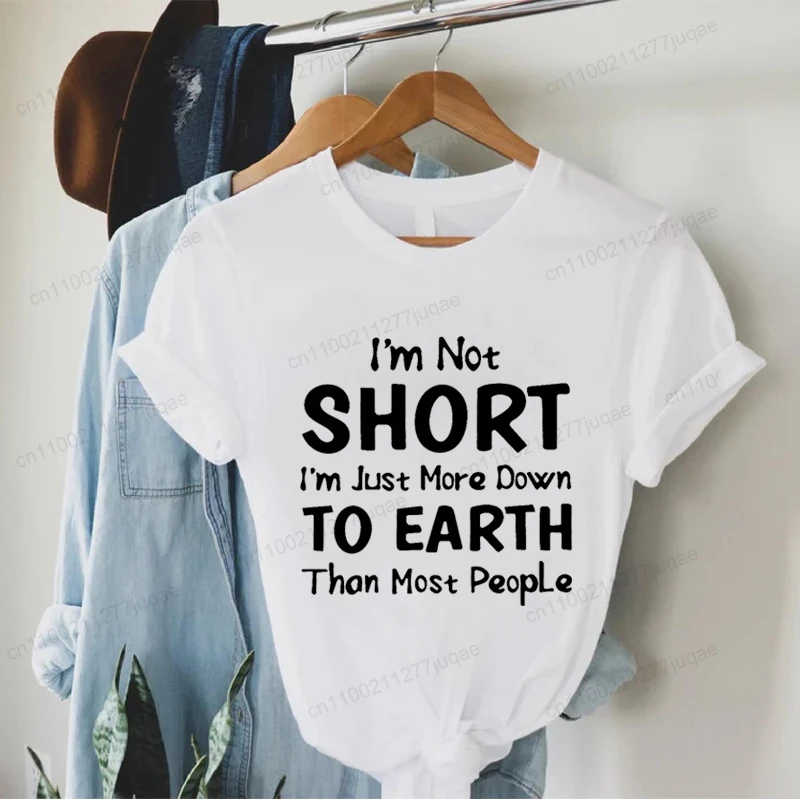 Women I'm Not Short I'm Just More Down To Earth Print T-Shirt Fashion Crew Neck Short Sleeve T-Shirt Casual Women's Clothing