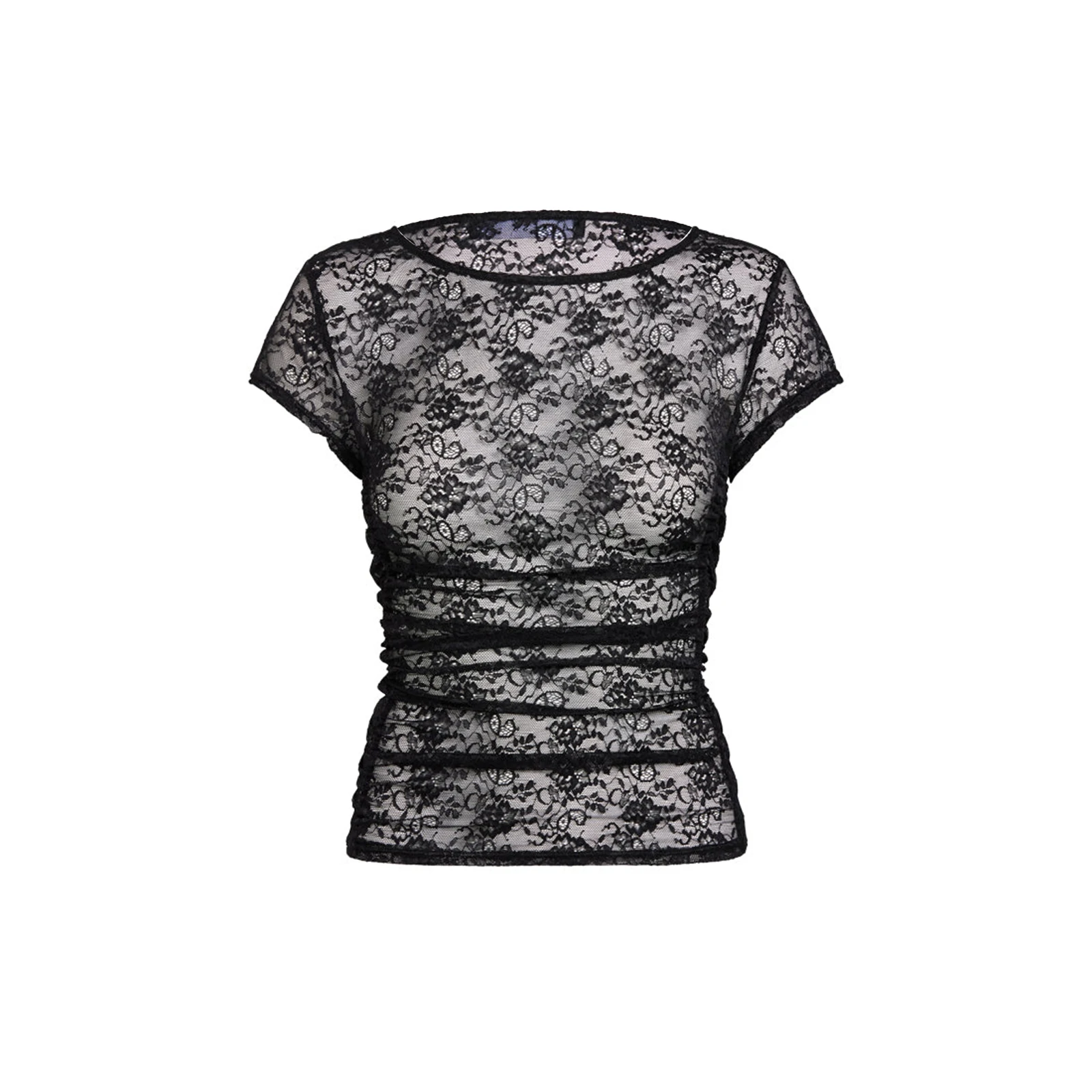 Women Lace Sexy Y2k Basics Minimalist Tanks Camis T-shirt Crew Neck Short Sleeve See-through Summer Tops for Club Party