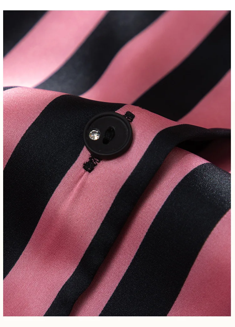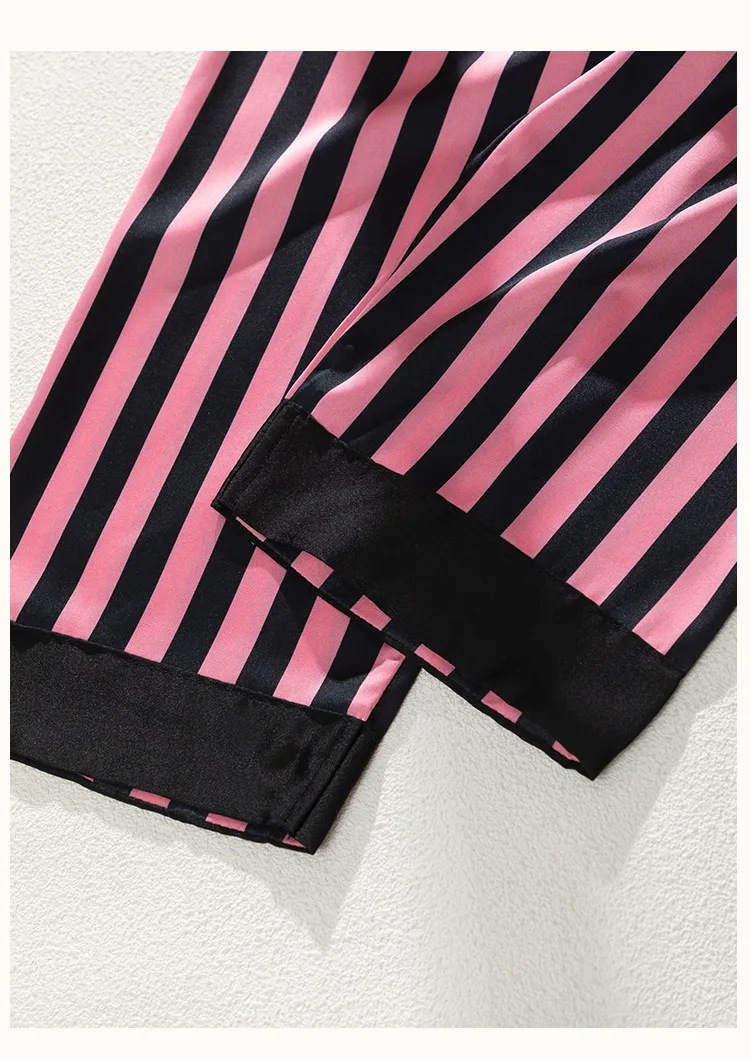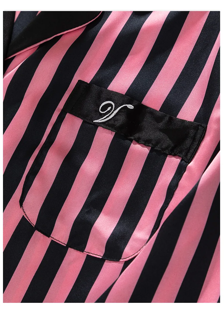 Women Long Sleeve Pajamas 2PCS Set Spring Summer New Sleepwear Loungewear Fashion Stripes Pyjama Pour Femme Loose Satin Homewear