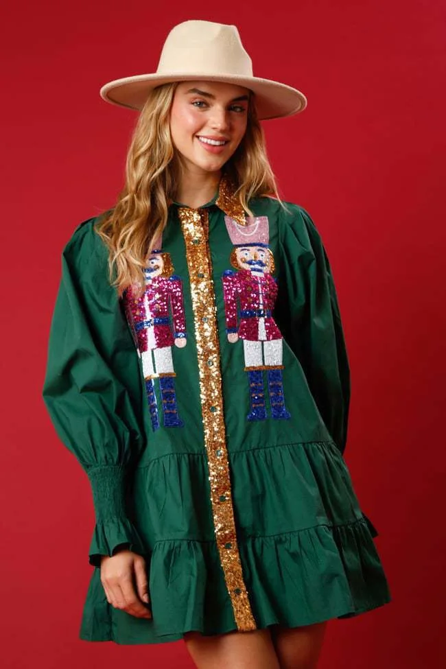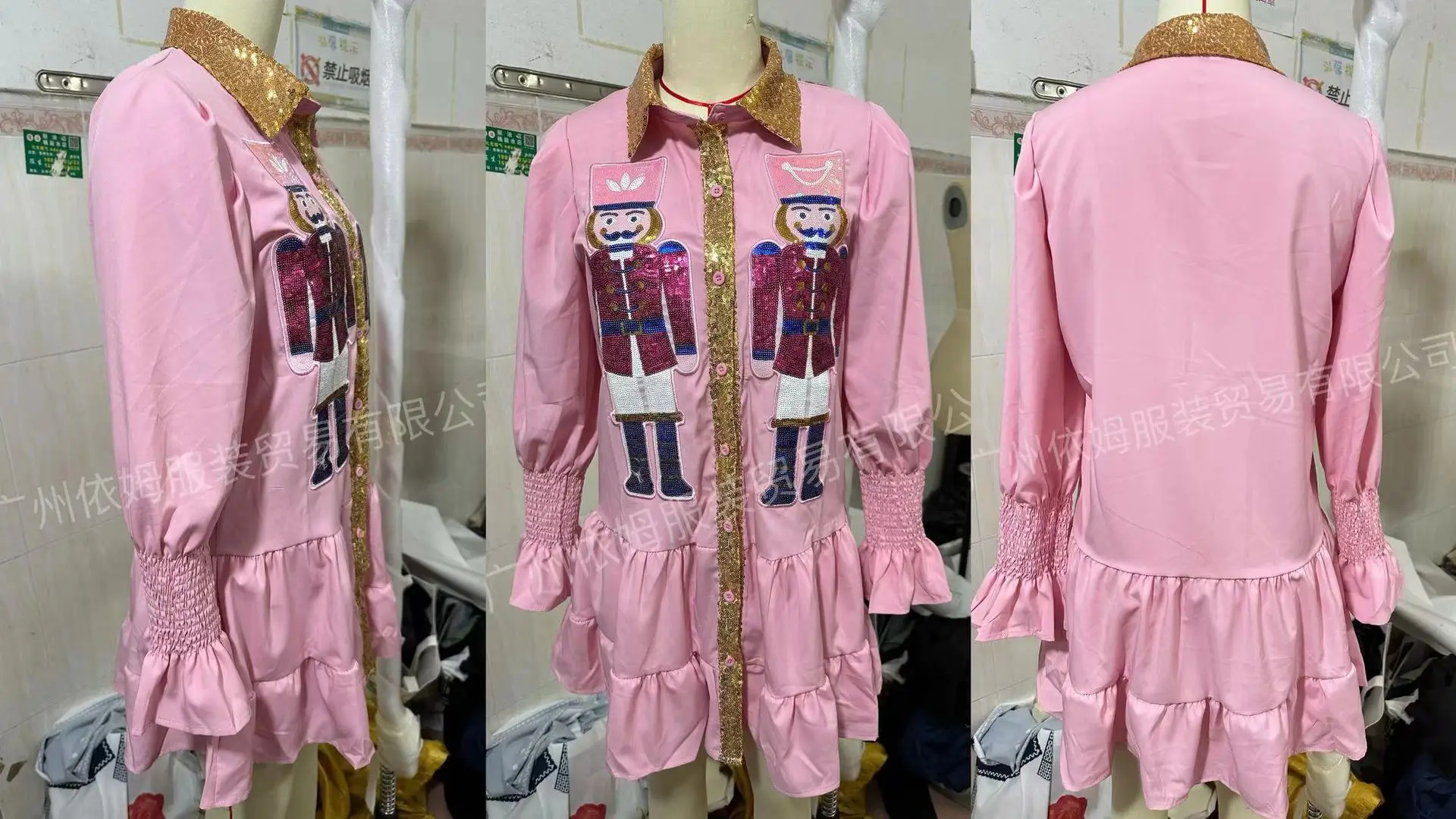 Women Sequin Christmas Nutcracker Shirt Dress Holiday Party Sweatshirt Dresses Long Sleeve Tiered Mini Sundress Prom Vestido New
