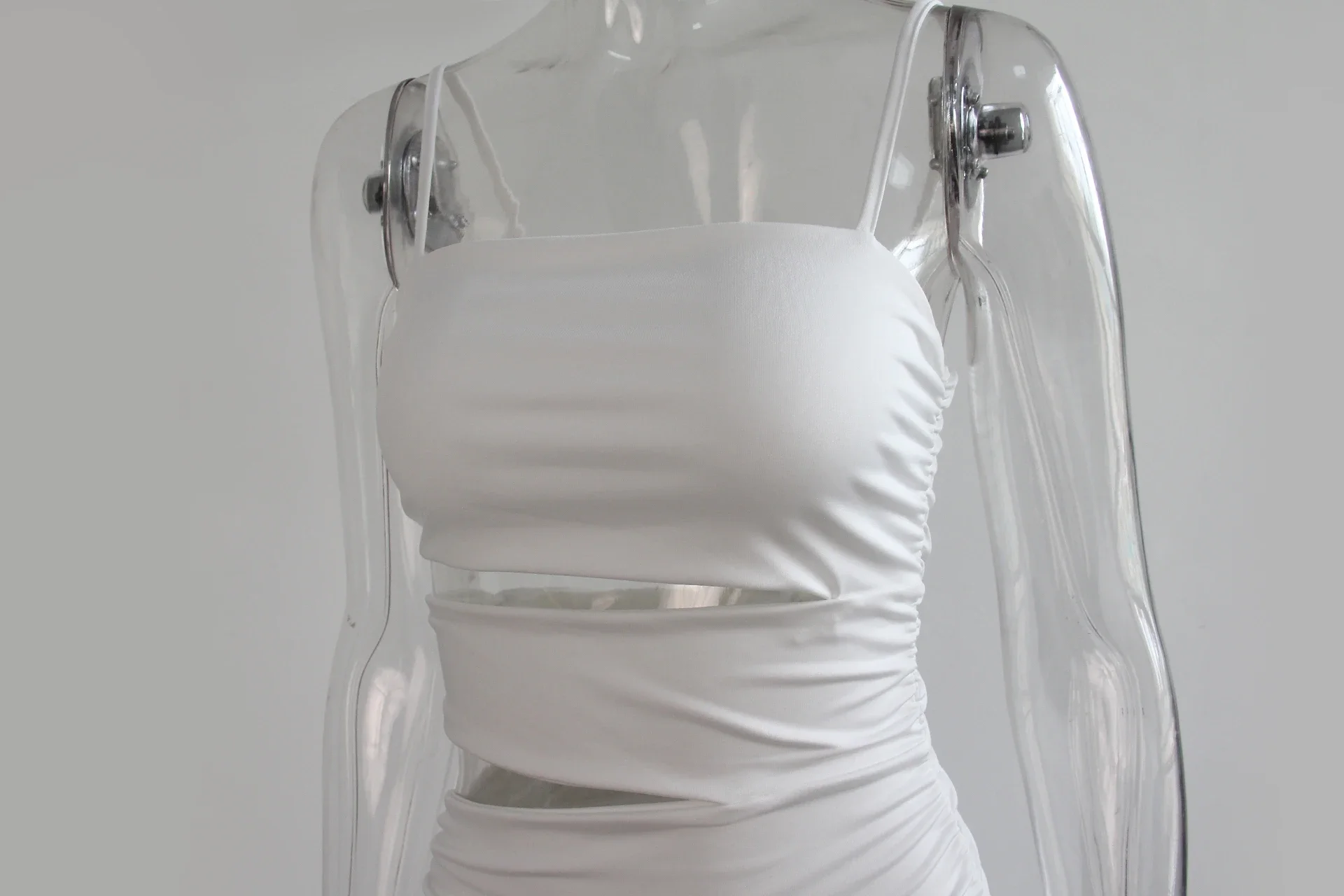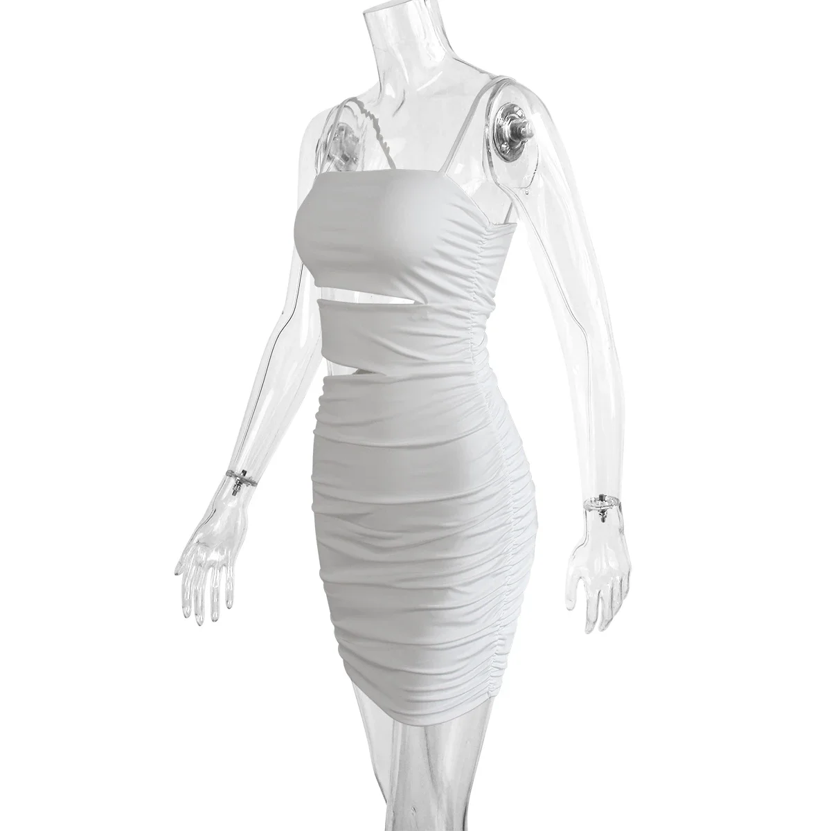 Women Sexy Spaghetti Strap Bodycon Mini Dress White Backless Party Evening Outfit Nightclub Vestidos