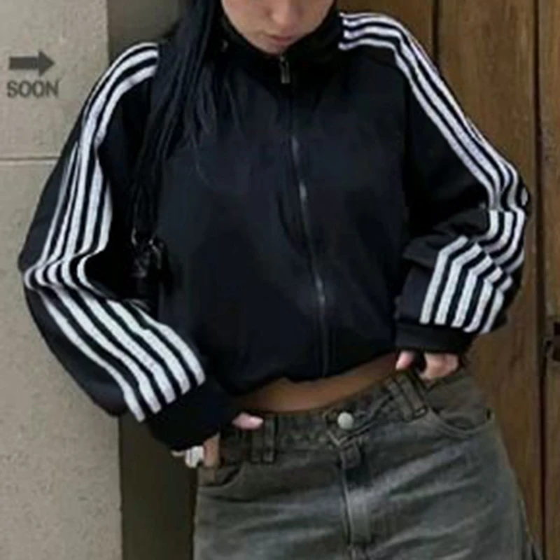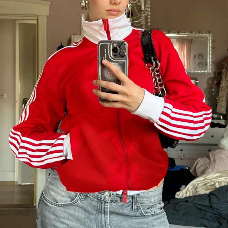 Women Sporty Zip Up Side Striped Jacket Autumn Casual Mock Neck Motorcycle Coats Tops Teen Girls Fashion Long Sleeve Sweatshirts