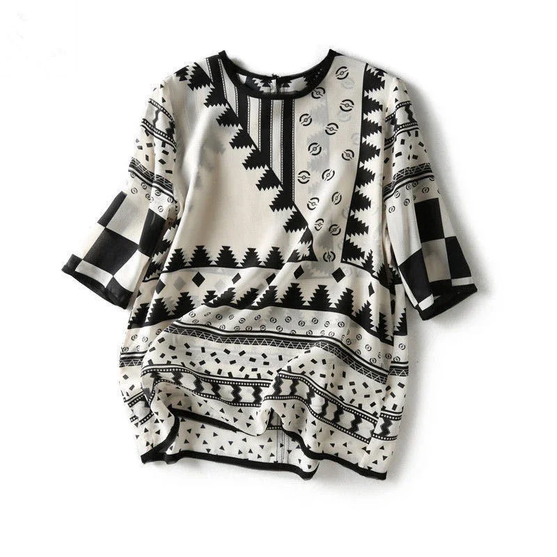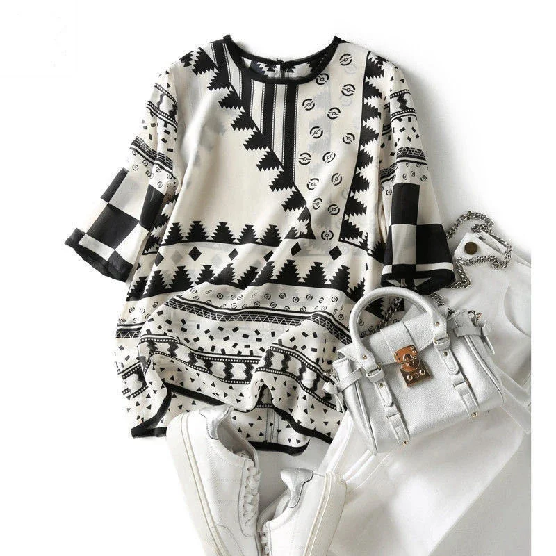Women Spring Summer Style Blouses Shirts Lady Casual Short Sleeve Printed Chiffon Blusas Tops