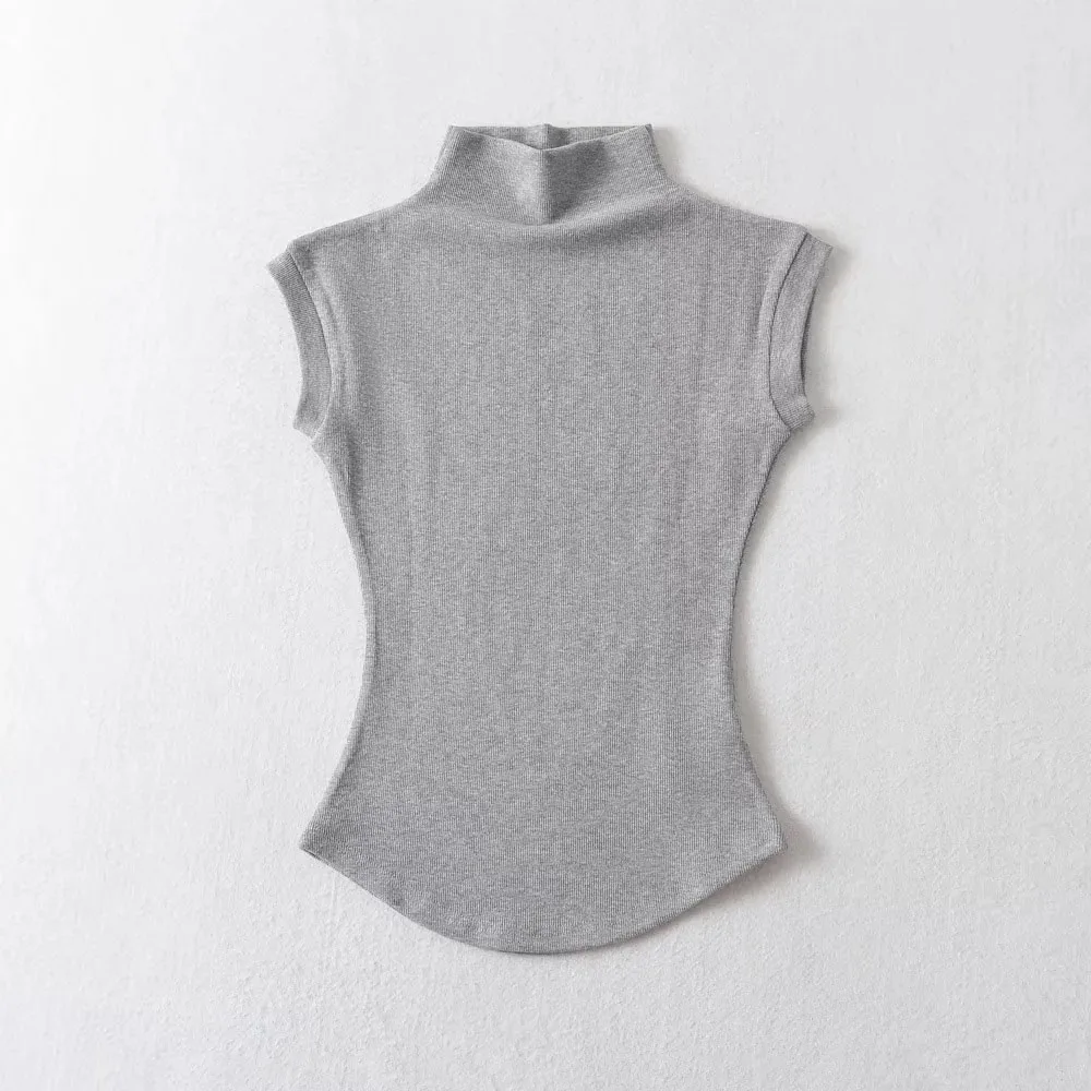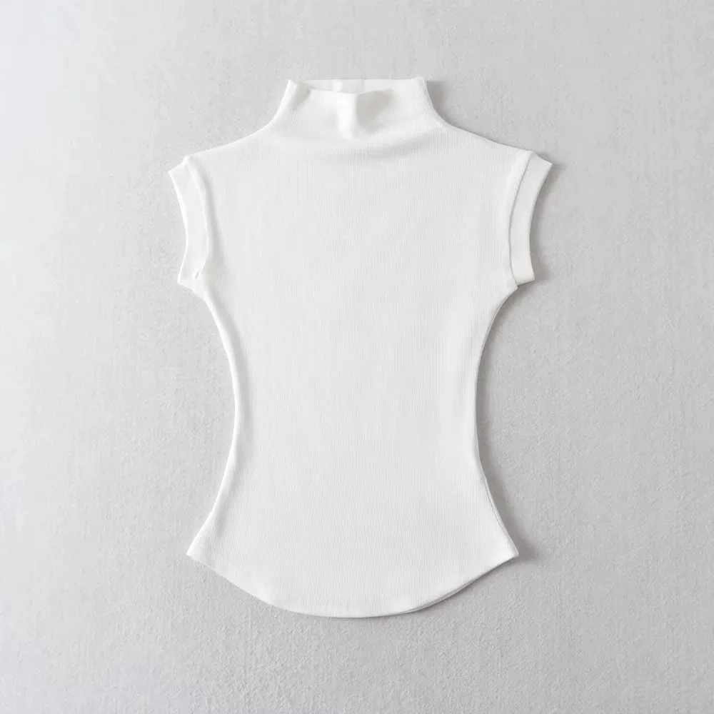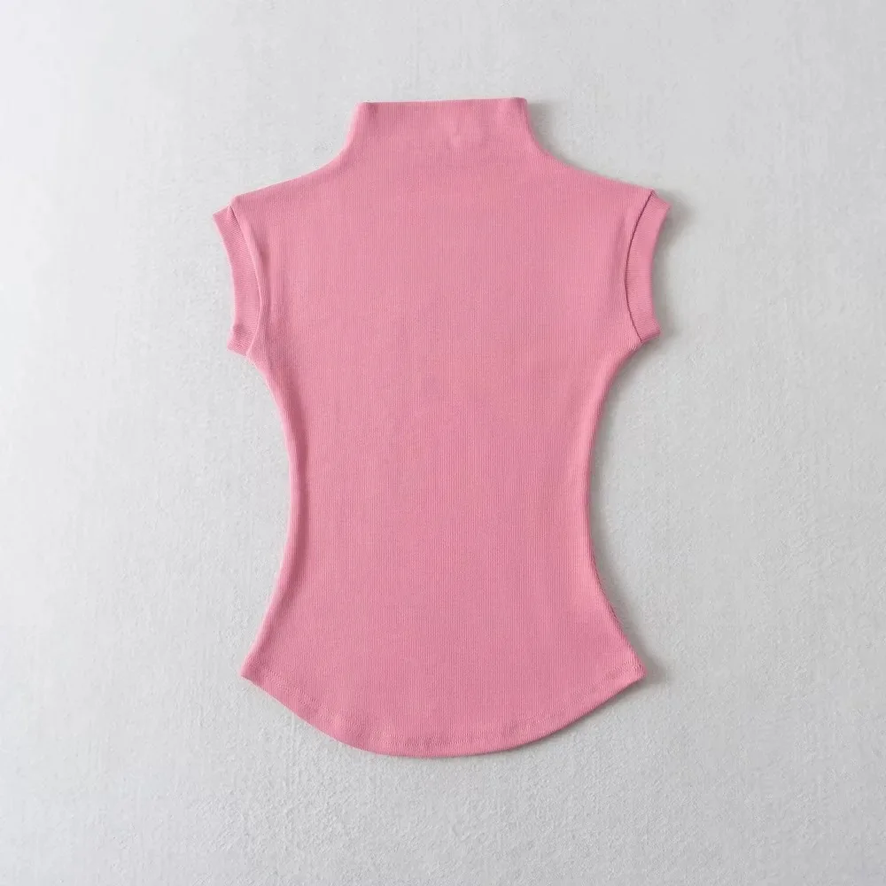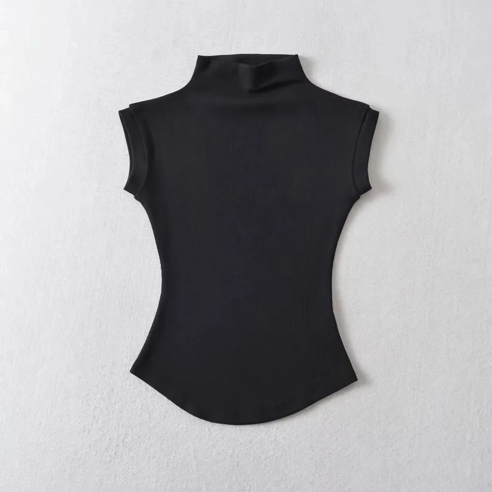 Women Summer Sexy Turtleneck Sleeveless T-Shirts Tops Solid Slim Fit Pullovers Causal Tees Shirts Female Streetwear Basics Tees