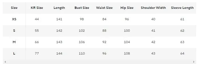 size_info: {"sizeInfoList":[{"length":{"cm":"141","inch":"55.51"},"size":"XS","vid":872},{"length":{"cm":"142","inch":"55.91"},"size":"S","vid":100014064},{"length":{"cm":"143","inch":"56.30"},"size":"M","vid":361386},{"length":{"cm":"144","inch":"56.69"},"size":"L","vid":361385}]}