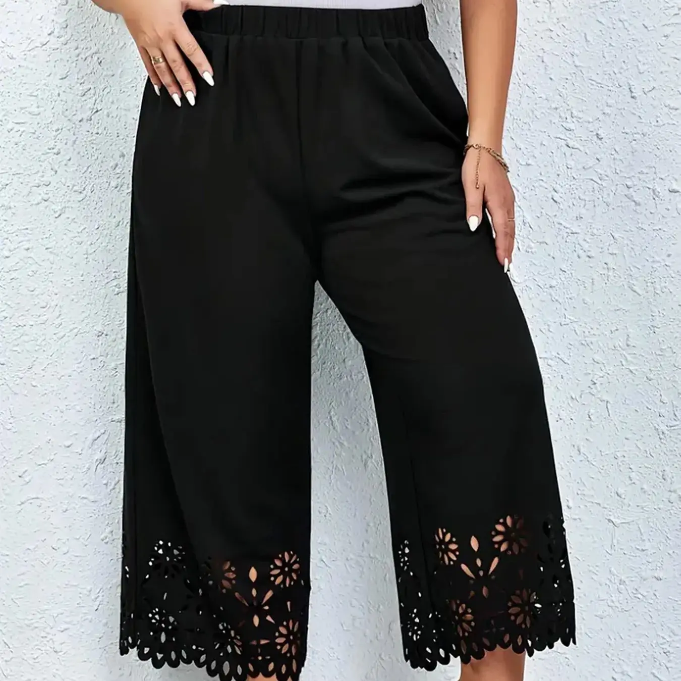 Women's 2024 summer new plus size knitted fabric elegant temperament hollow wide leg pants