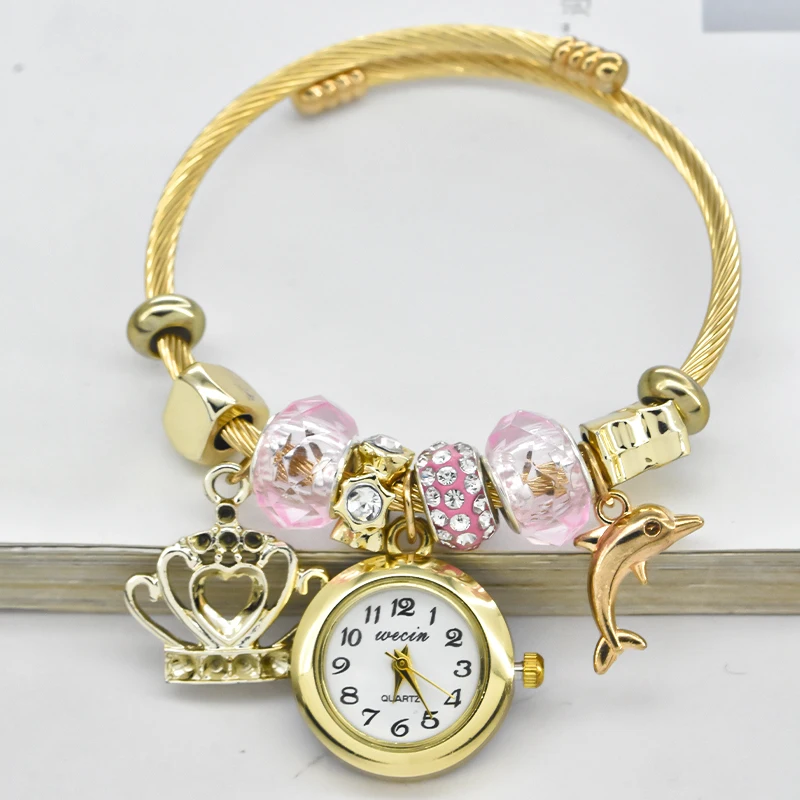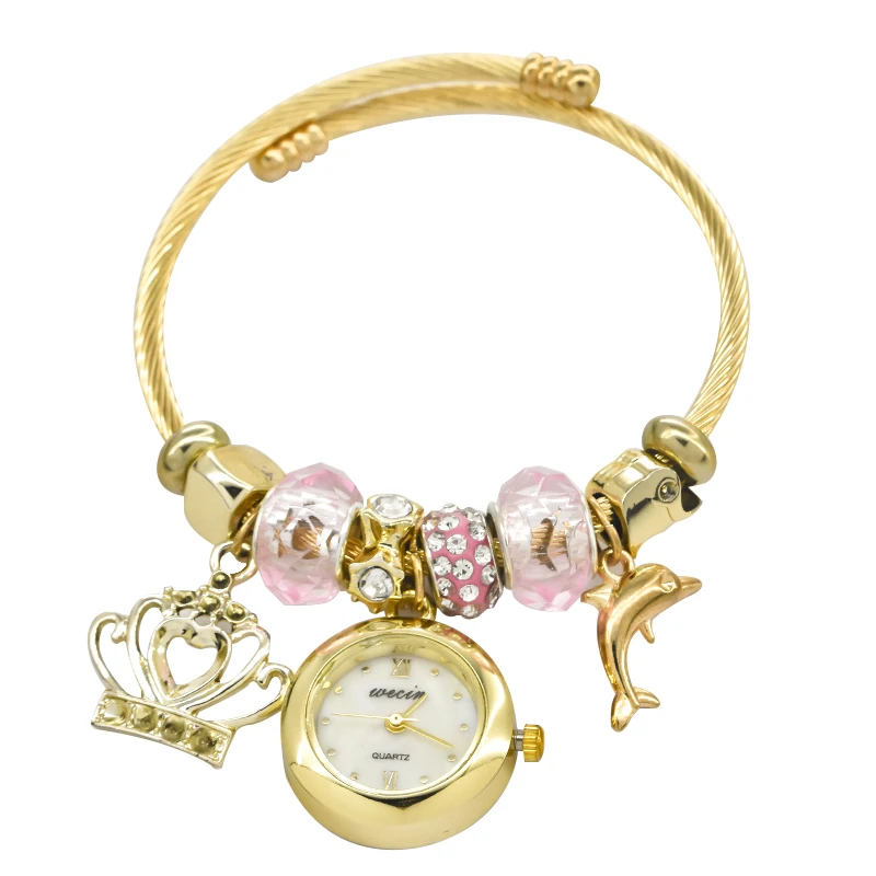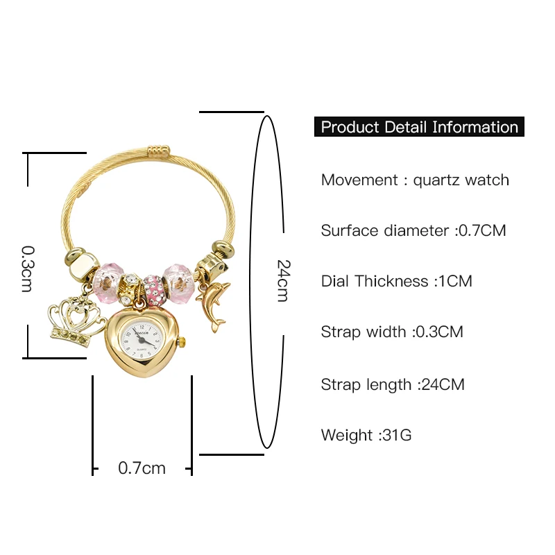 Women's Bracelet Watch Love With Stylish Decor Refined Round Quartz Watch Casual Elegance