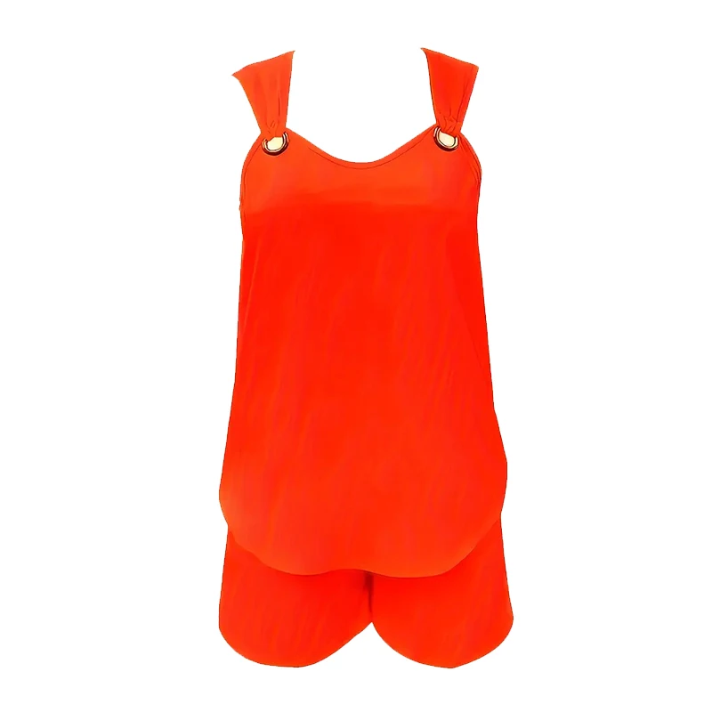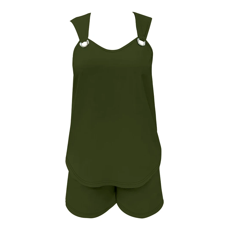 Women's Casual Fashion Set with Suspender Sleeveless Solid Color Top and Pants Set Summer Comfortable Clothing
