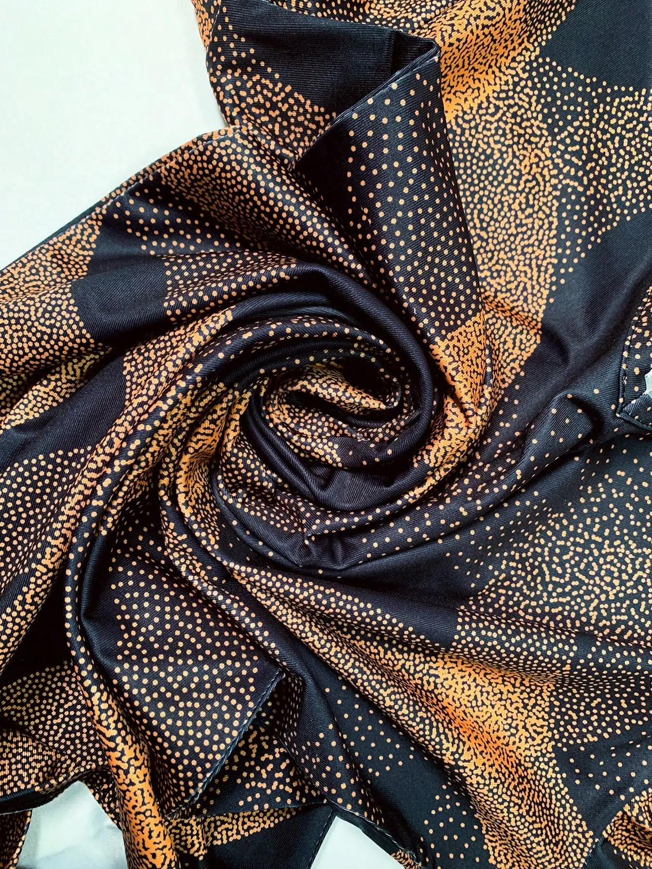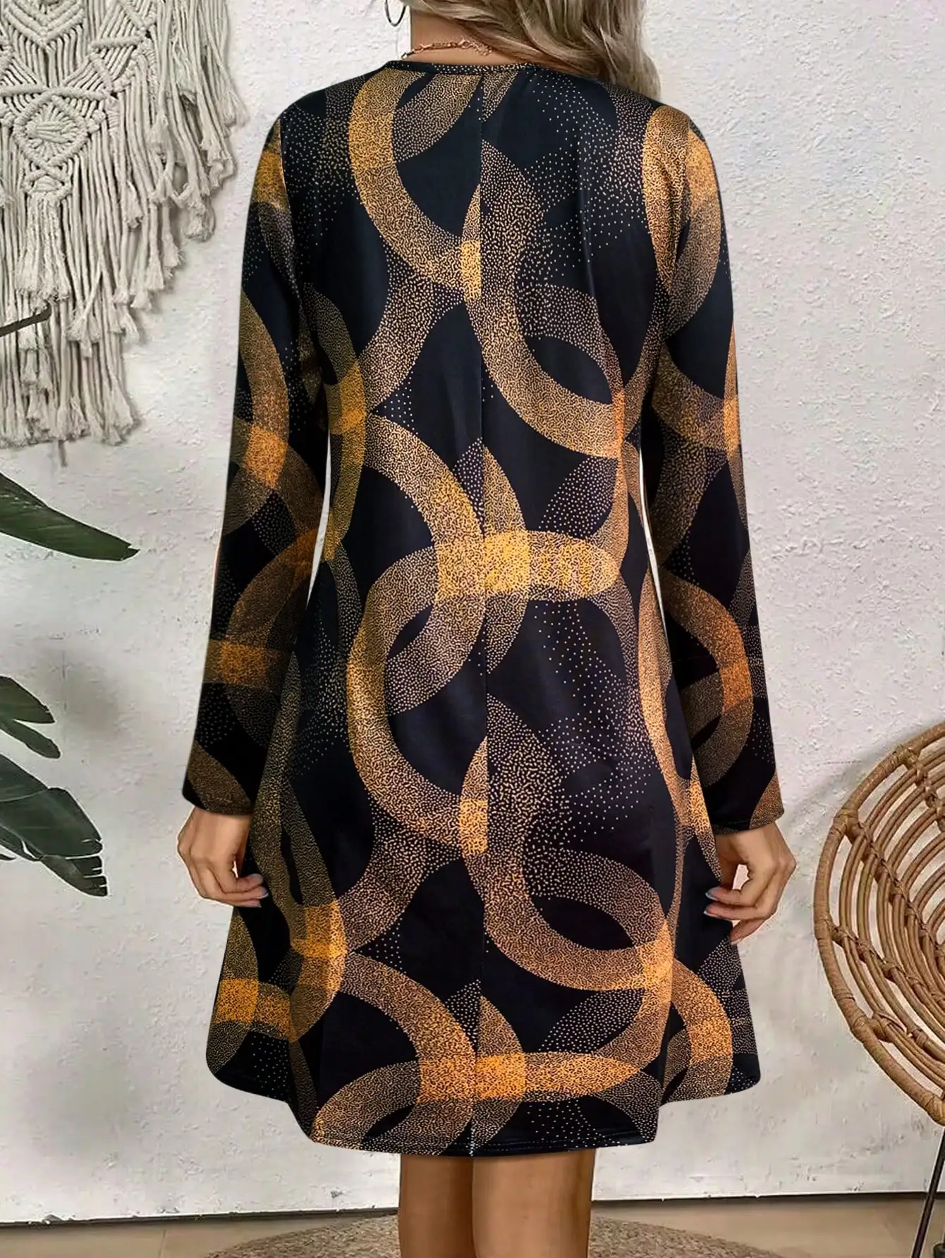 Women's Early Autumn Long - Sleeve V - Neck Dress, Geometric Gold - Print, Ideal for Casual & Evening