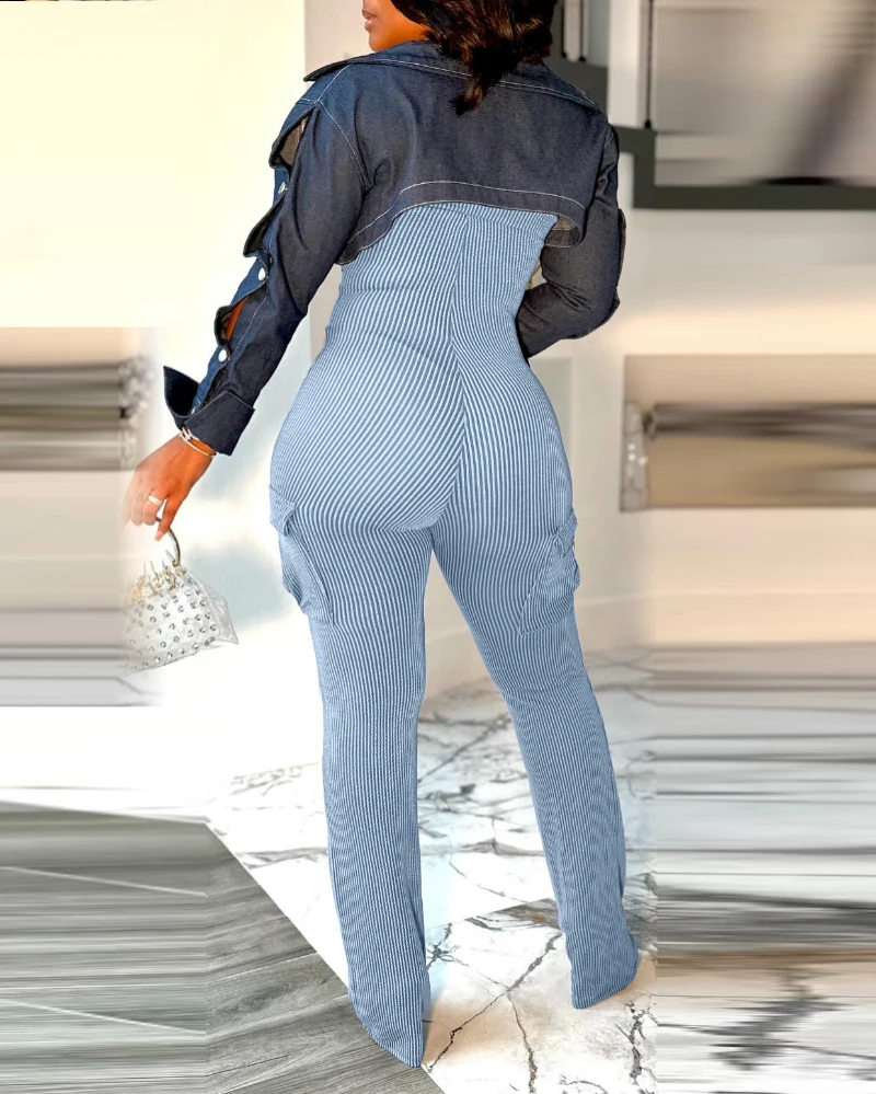 Two Piece Set Women Outfit 2023 Spring Fashion Drawstring Pocket Design U-Neck Sleeveless Skinny Jumpsuit & Long Sleeve Coat Set