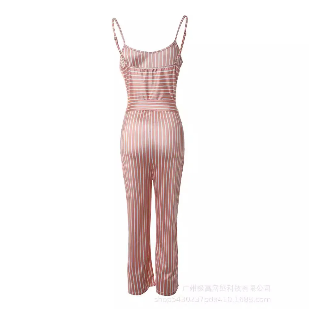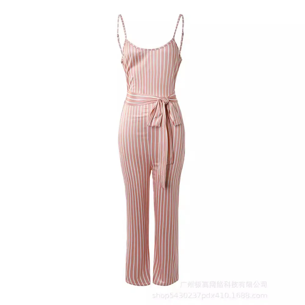 Women's Jumpsuit 2024 Summer Elegant Casual Striped Printed Spaghetti Strap Tie Details Mid Waisted Tight Fit Cropped Jumpsuit