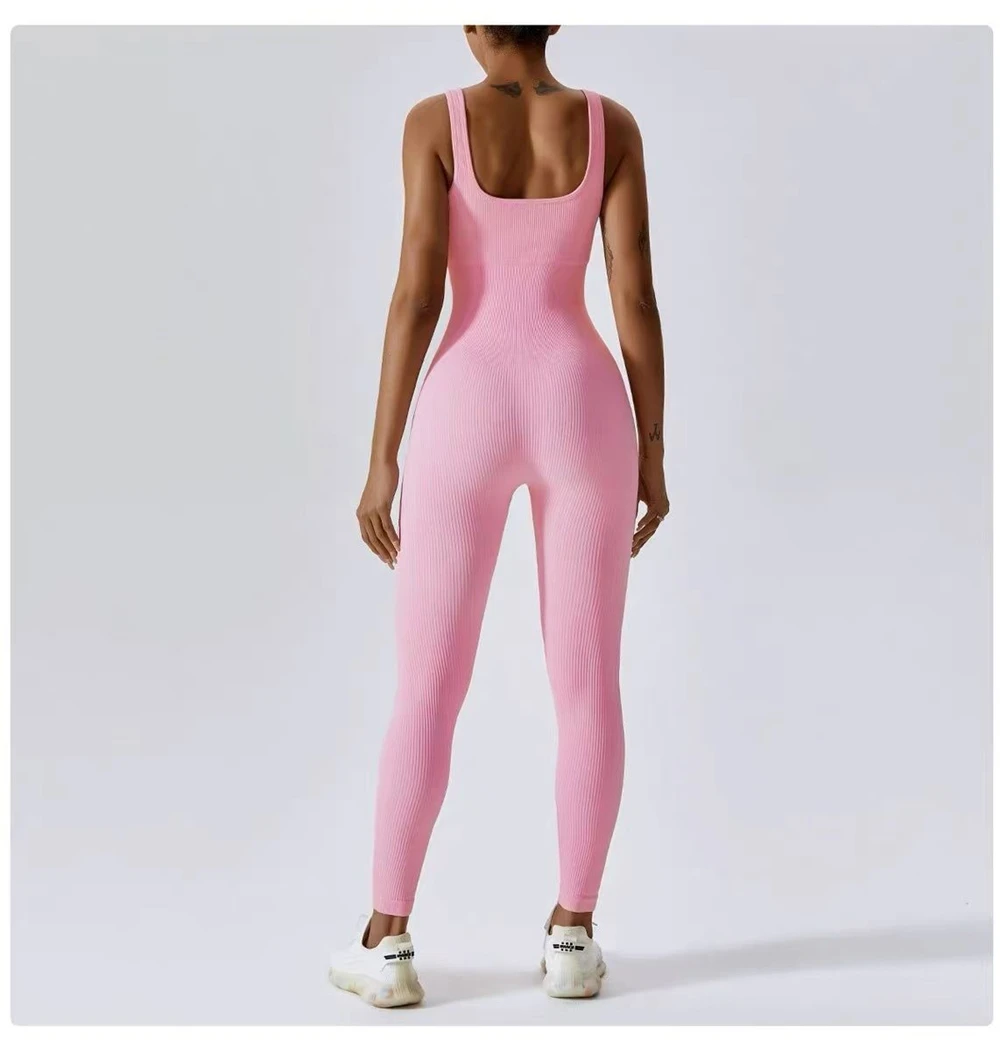 Womens Jumpsuits Sleeveless Yoga Slim Fit Stretch Screw Thread One Piece Romper Sexy Fitness Seamless Pink Sportwears Chest Pads