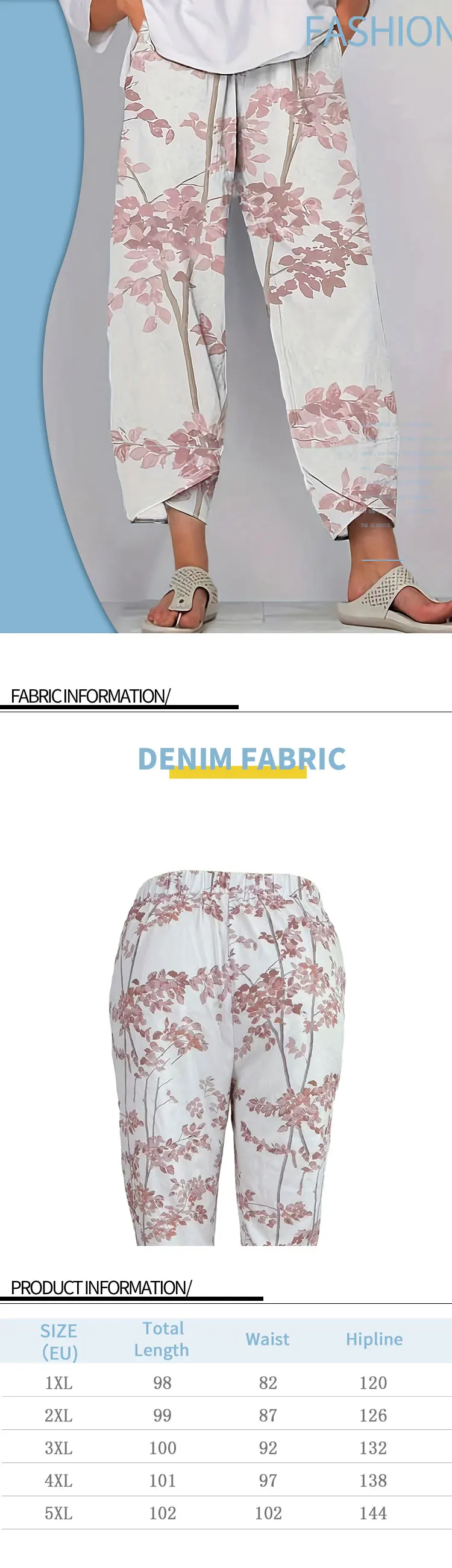 Womens Plus Size Casual Summer Pants Straight Leg Floral Print with Pockets Machine Washable Non Stretch Fabric for Casual Wear