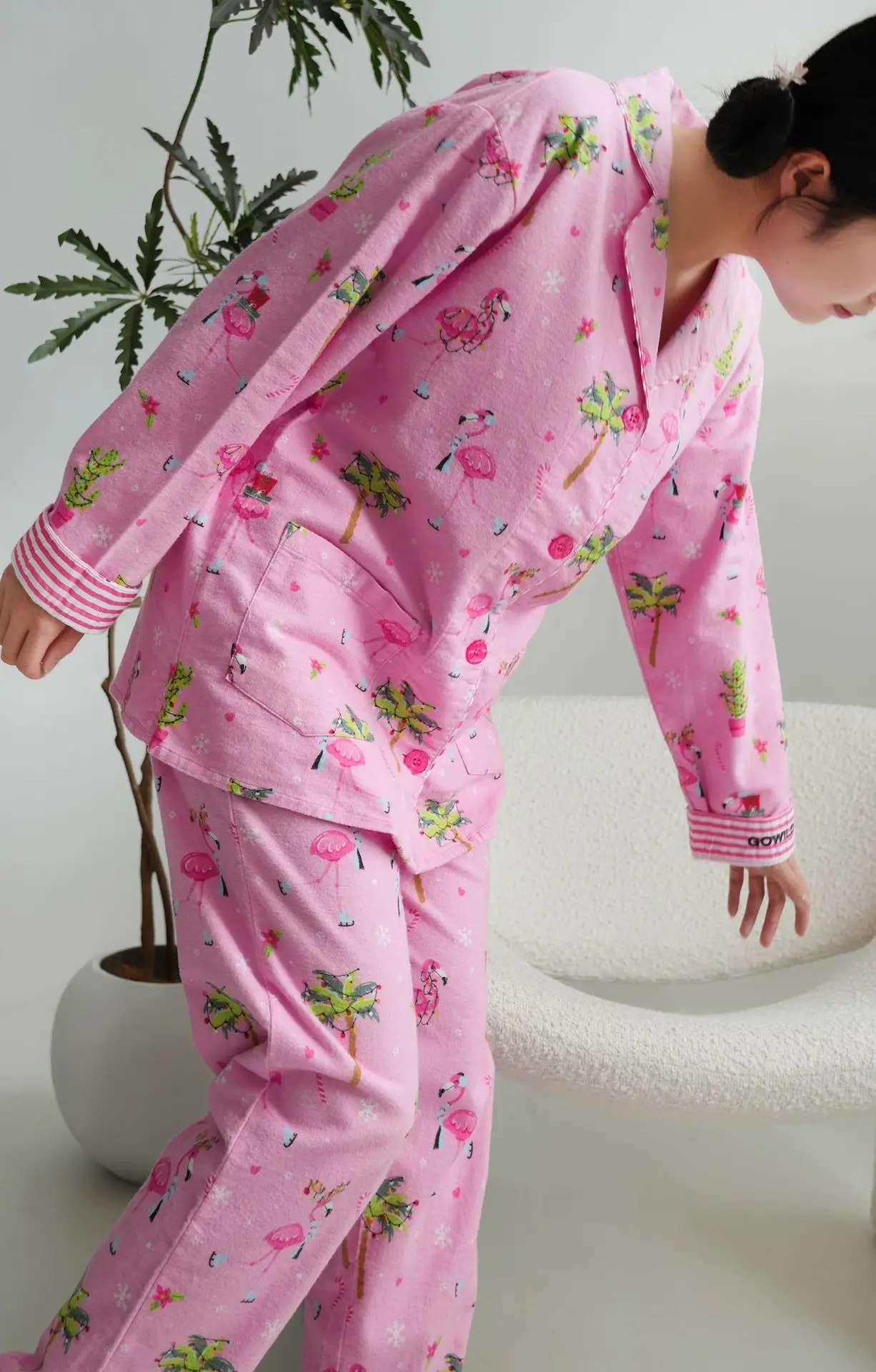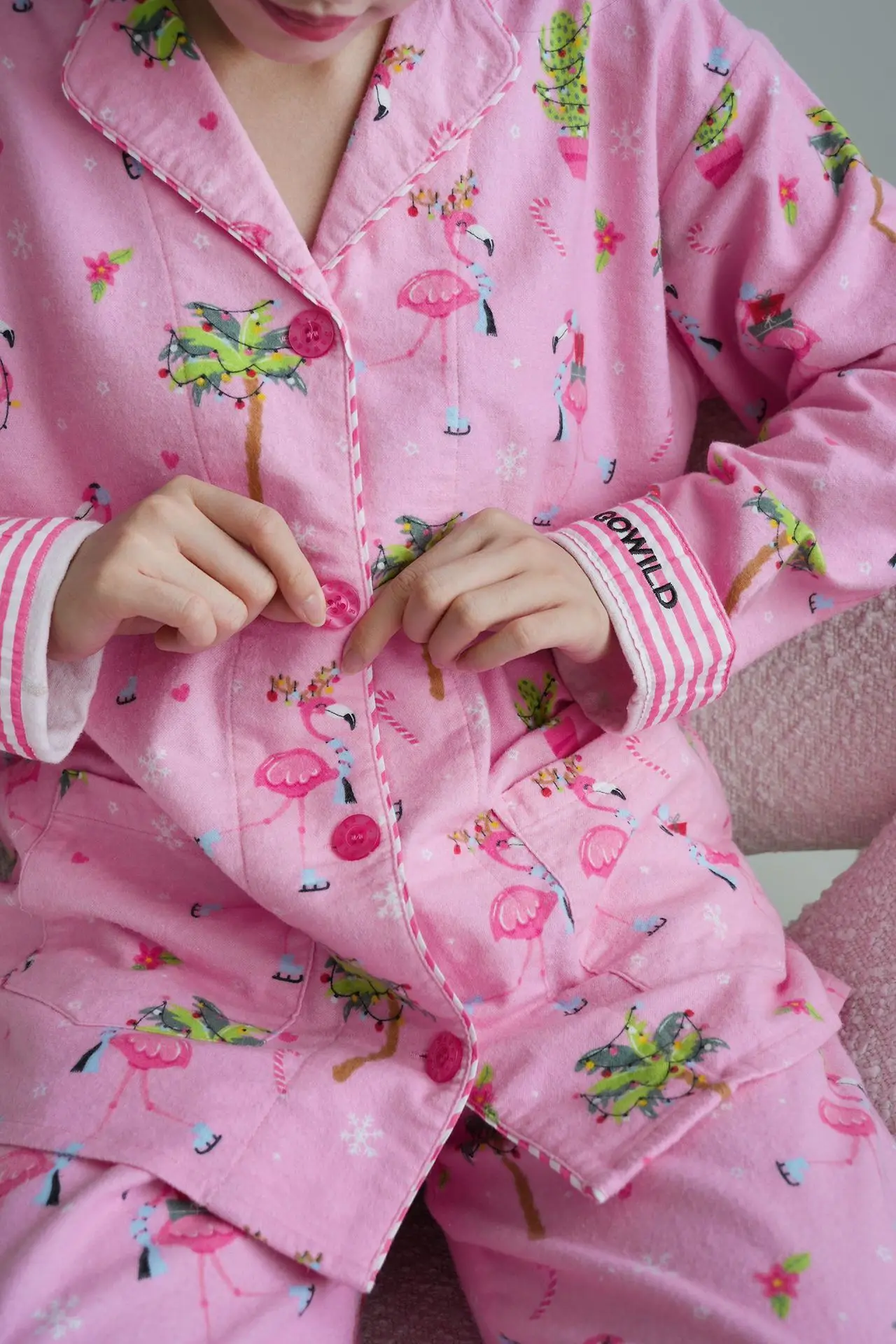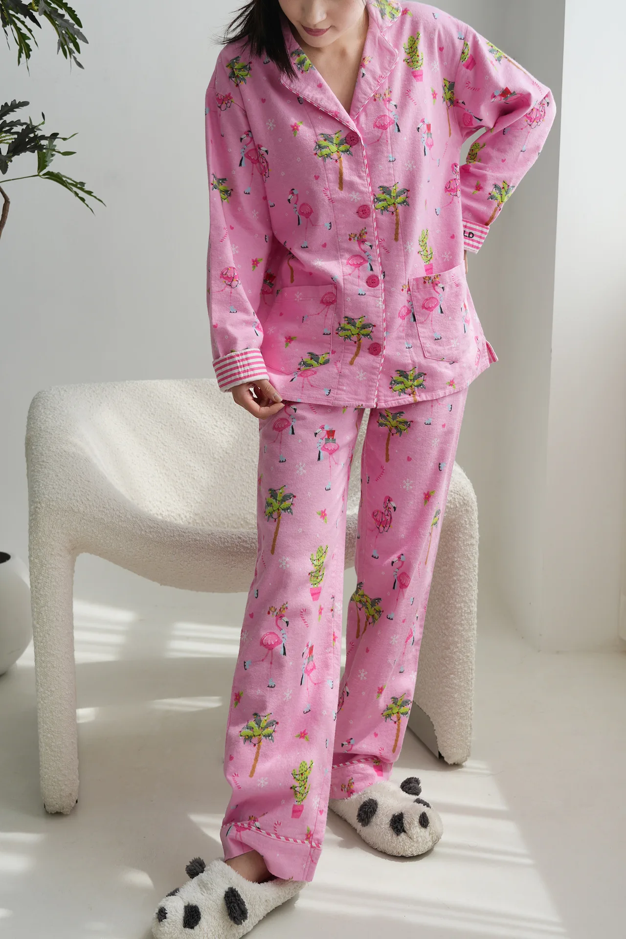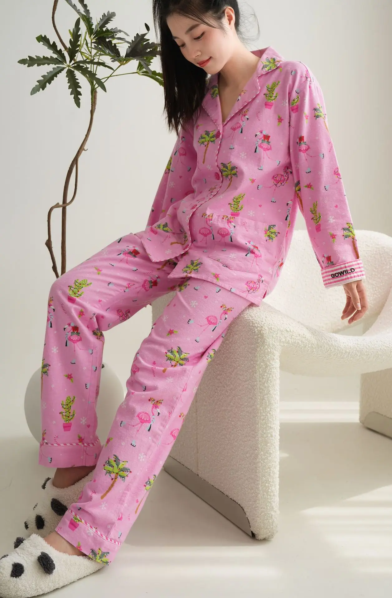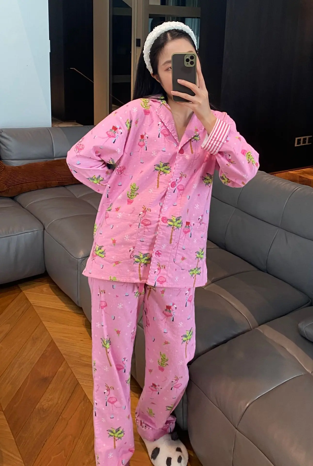 Women's Print Cotton Pajama Set Long Sleeve Autumn Winter Ladies Sleepwear 2 Pcs with Pant Single Breasted Pijama Suit Female