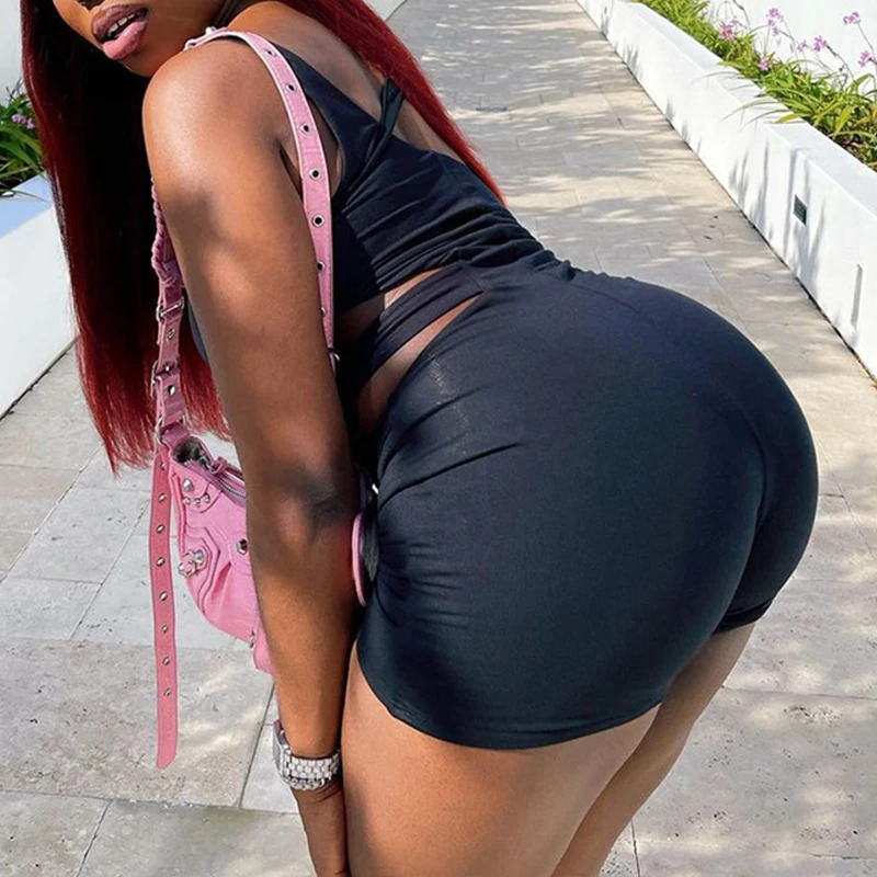 Women's Sexy Rompers Trendy Bodycon Irregular Hollow Out Holes Singel Sleeve Off Shoulder Y2k Playsuits Female Casual Streetwear