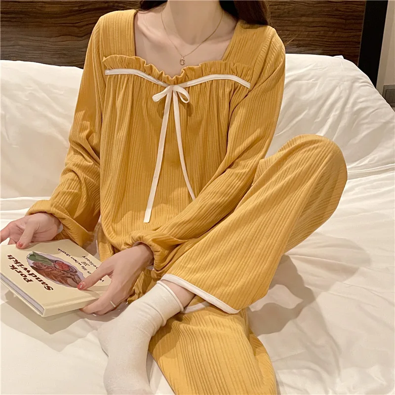Women's Spring and Autumn Pajamas Set Women's Long-Sleeved Long Trousers Pajamas Homewear Sweet Leisure Homewear Loose Set