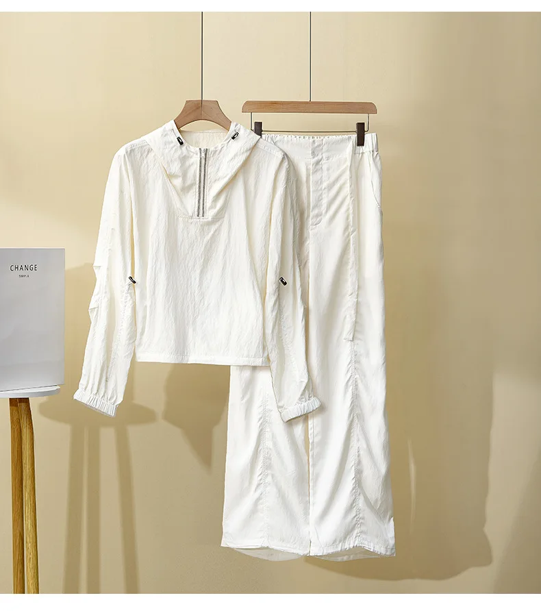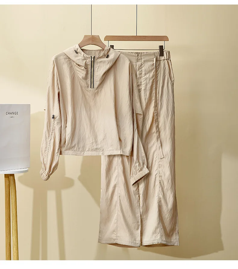 Women's Spring Summer New Hooded suit Casual Sports Fashion Chain Cardigan with Trousers Two-piece Set