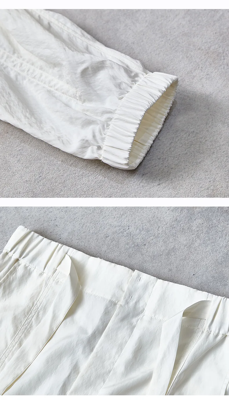 Two Piece Set Women Outfit 2023 Spring Fashion Drawstring Pocket Design U-Neck Sleeveless Skinny Jumpsuit & Long Sleeve Coat Set