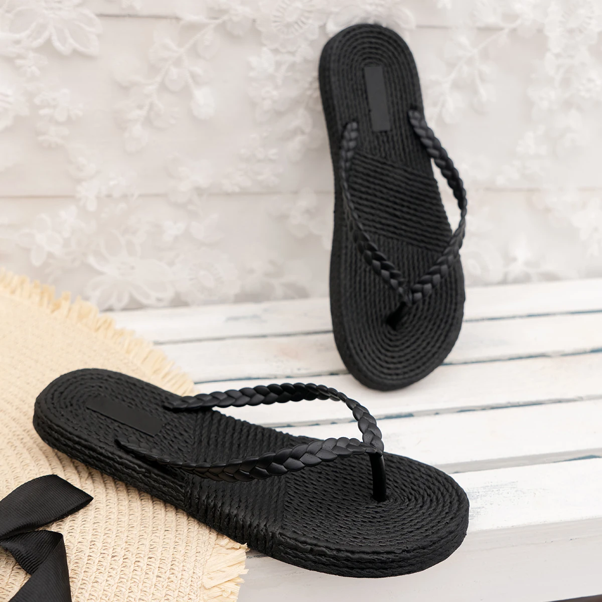 Women's summer beach vacation round-toed comfortable open-toe flip-flops, casual and home-style flip-flops