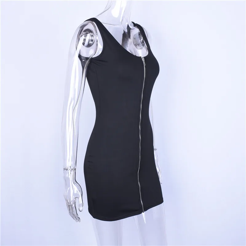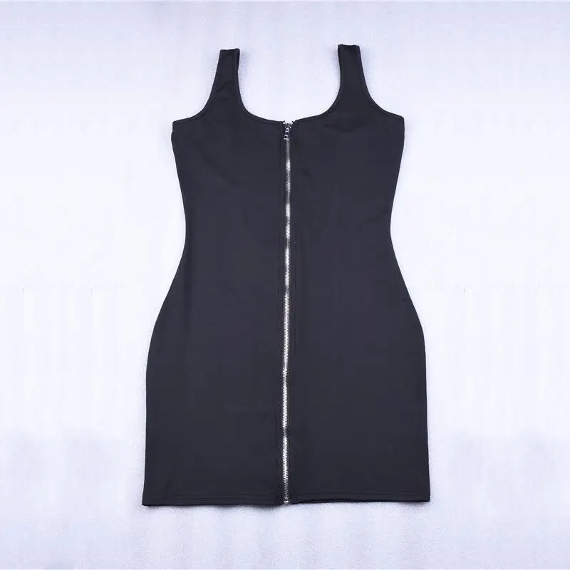 Women's Summer Sexy Zipper Halter Backless Intellectual Solid-colored And Stylish Bodycon Suspender Simple Sleeveless Dress