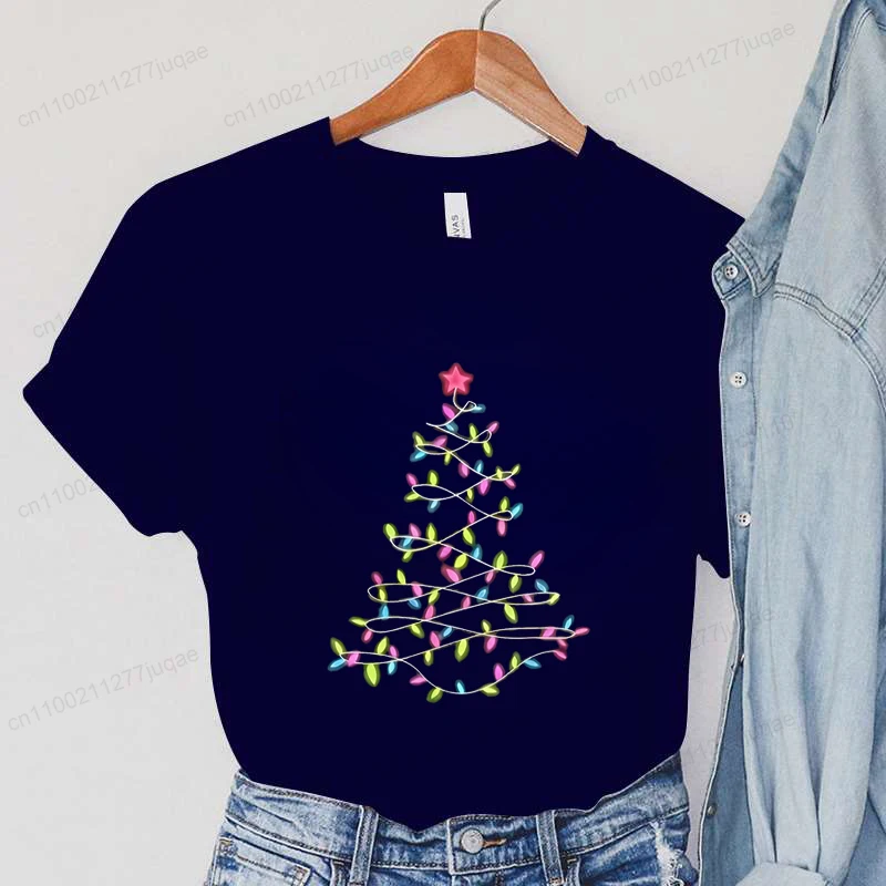 Women'S T-Shirts Clothing Round Neck Casual Tops Christmas Lights Xmas Tree Simple Design Style T-Shirts Harajuku Streetwear