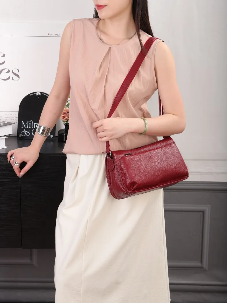 Women's Top-Grain Cowhide Leather Shoulder Bag Spacious Minimalist Crossbody for Effortless Commuting Tote with Adjustable Strap