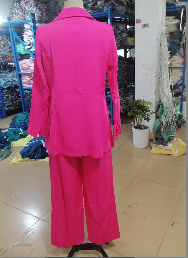 Women's Urban Suits 2024 Spring/Summer Latest Elegant Notched Collar Blazer Long sleeved Coat&Pocket Design Button Pants Set