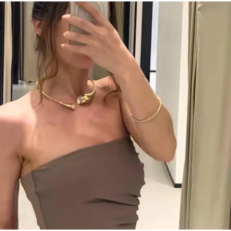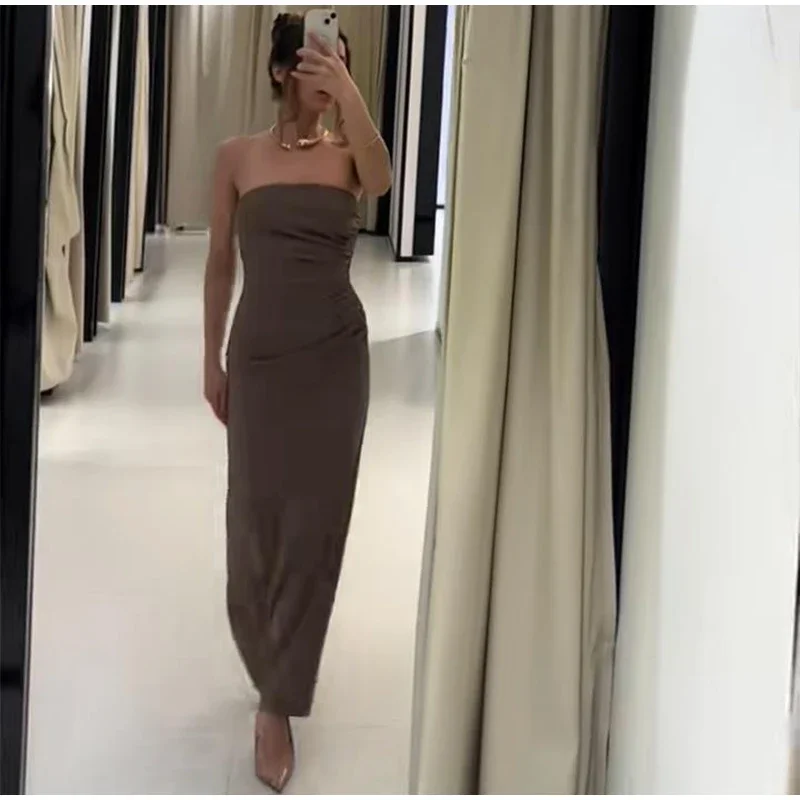 Women's V-neck Sleeveless Backless Slim Fit Metal Halter Jumpsuit Sexy Hollow out Long Robe Party Dress New Tank Top 2025 Summer