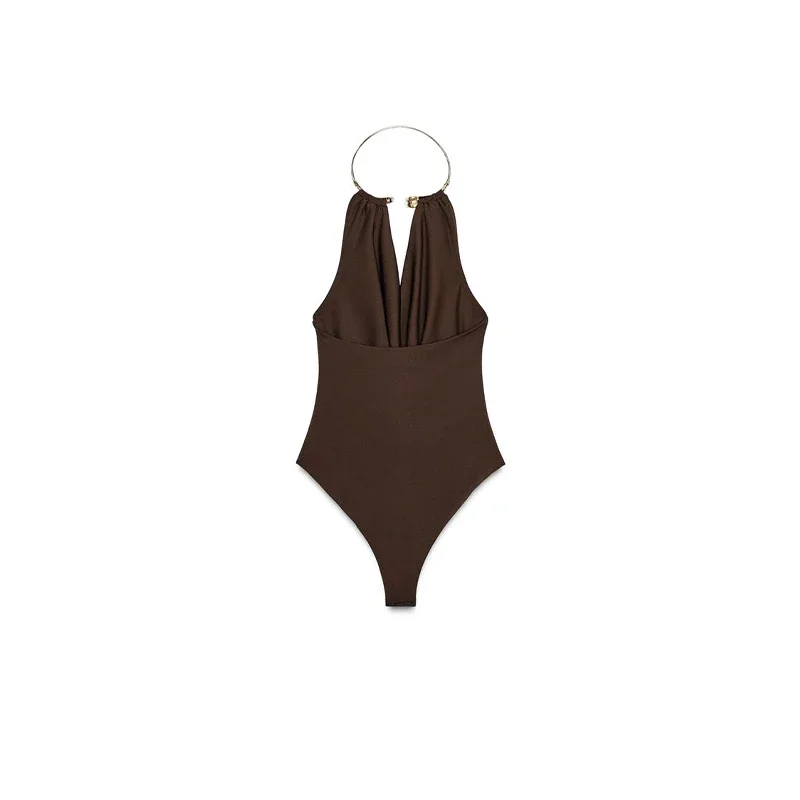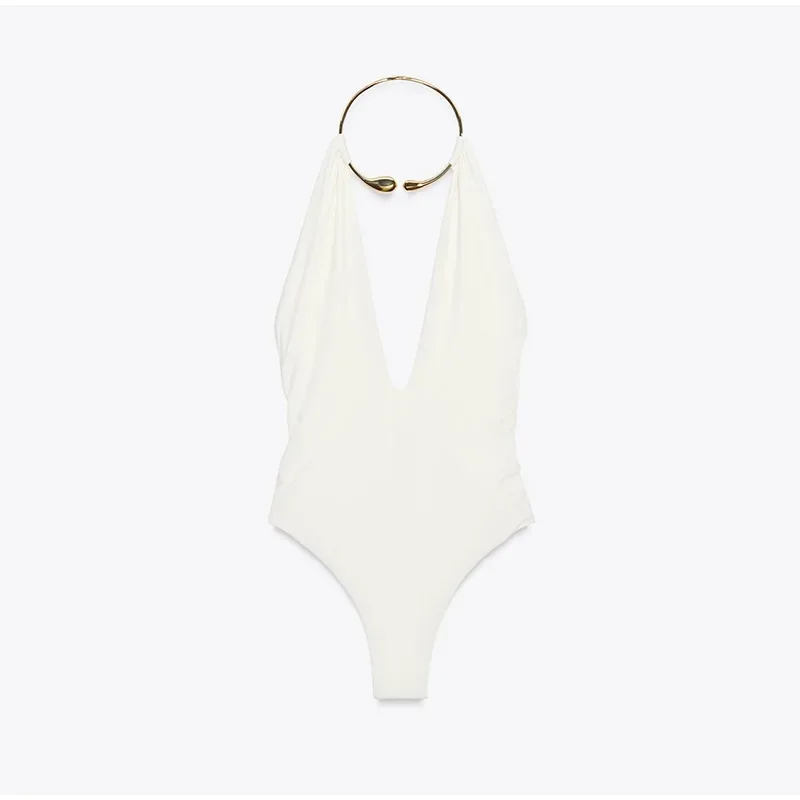 Elegant halter neckline adds a touch of sophistication, perfect for beach-style outings.