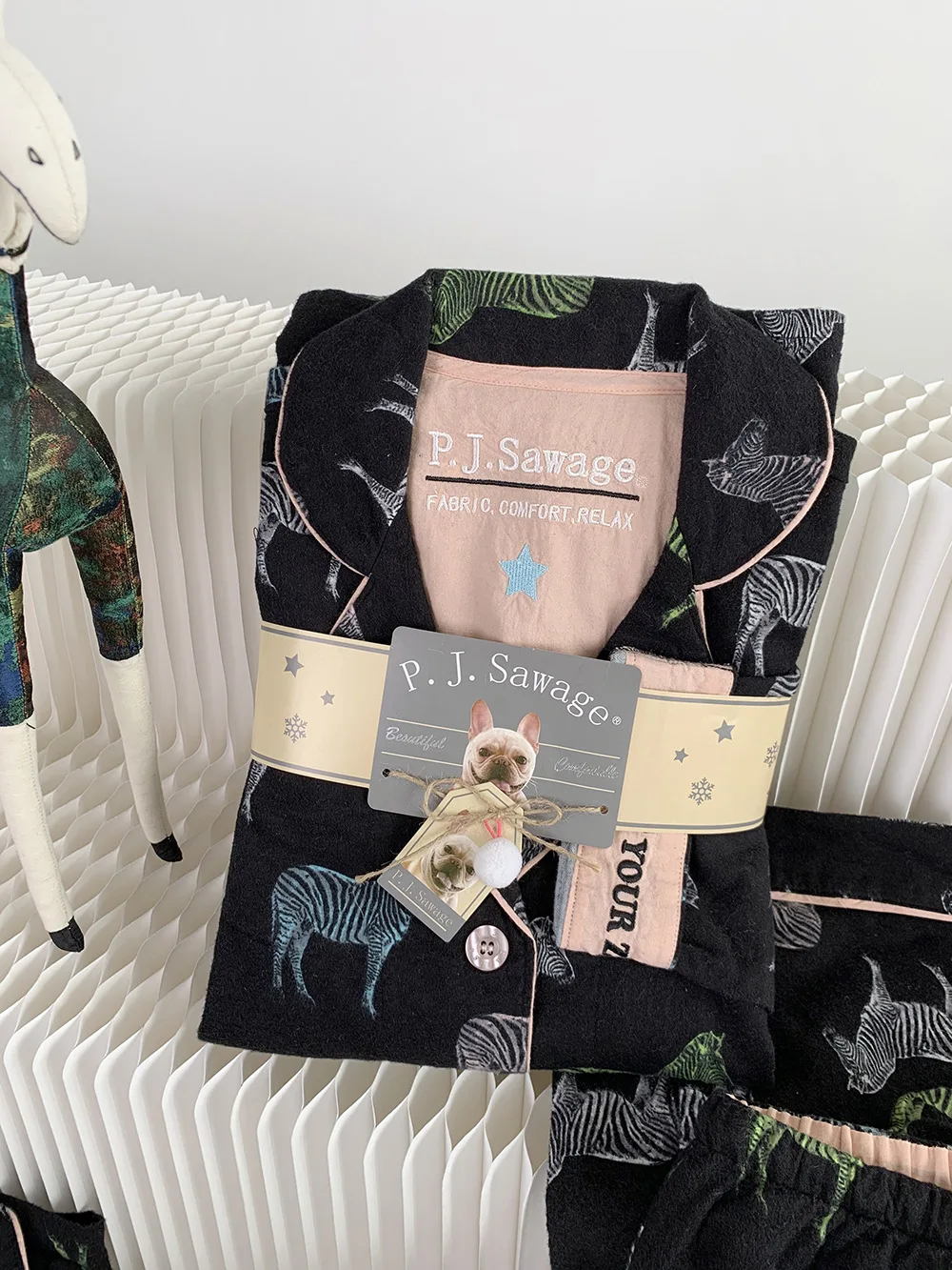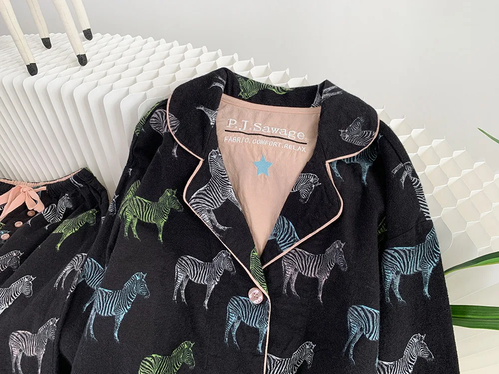 Women's Winter Pyjama Suit Print Long Sleeve Turn Down Collar Female Clothes 100% Cotton Single Breasted Sleepwear for Female