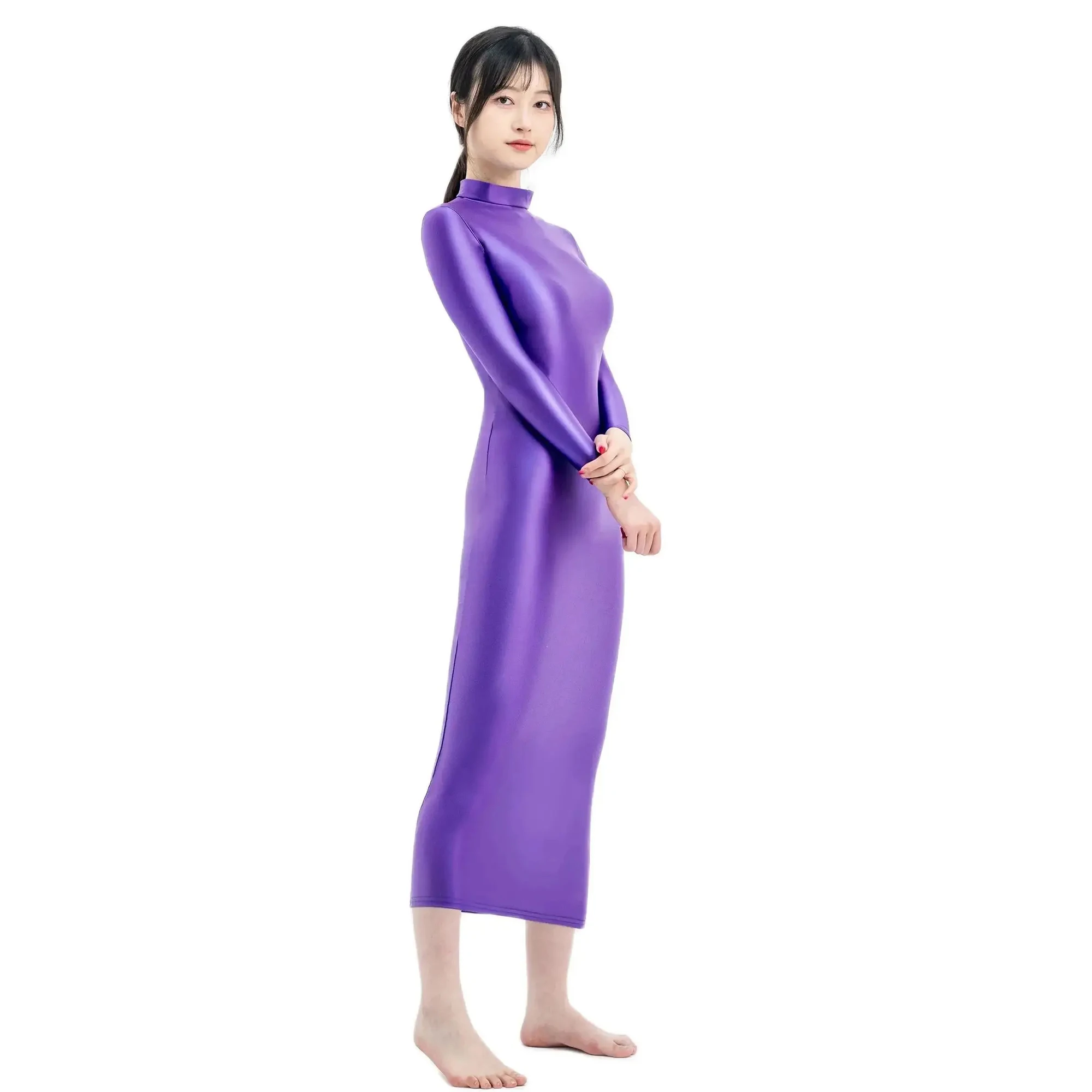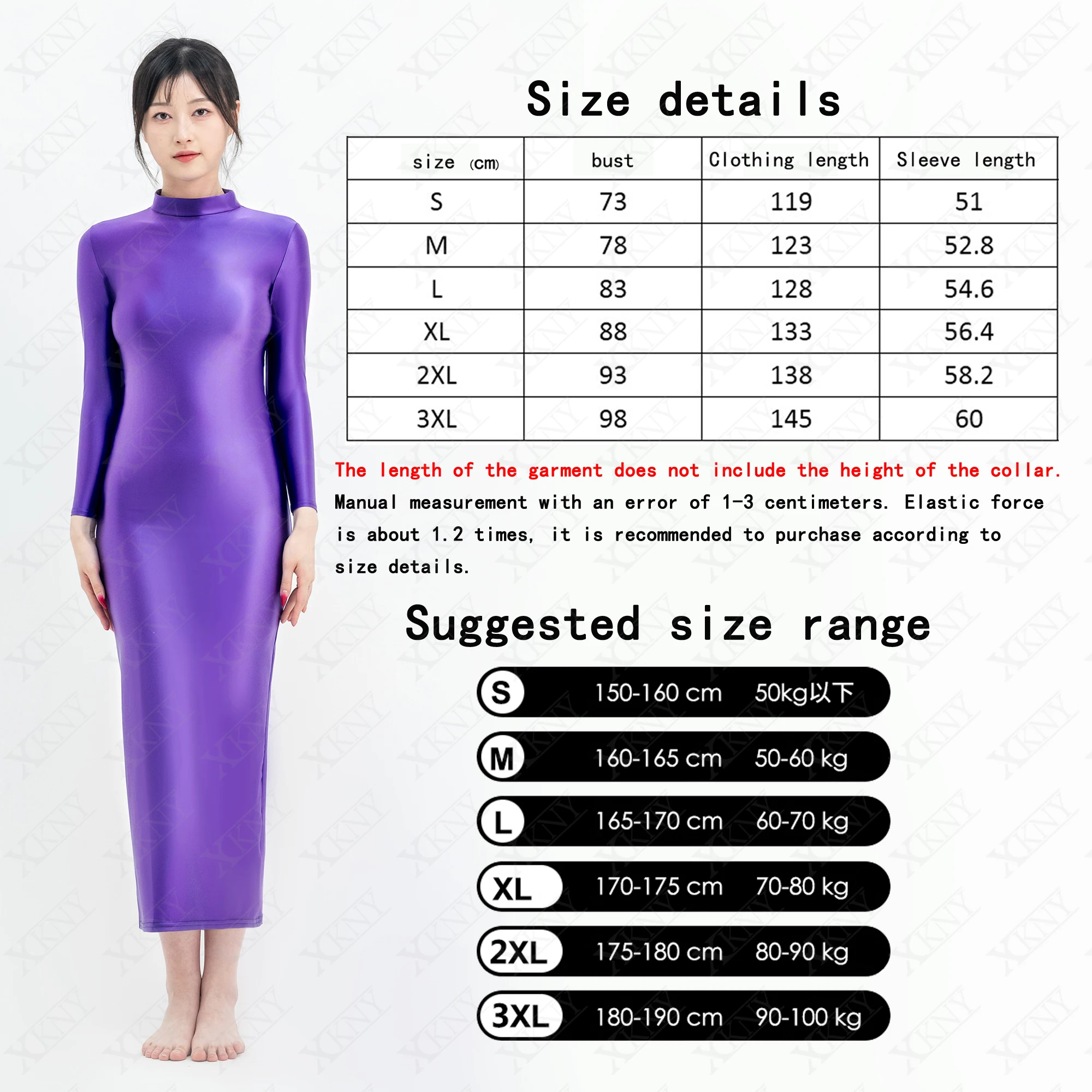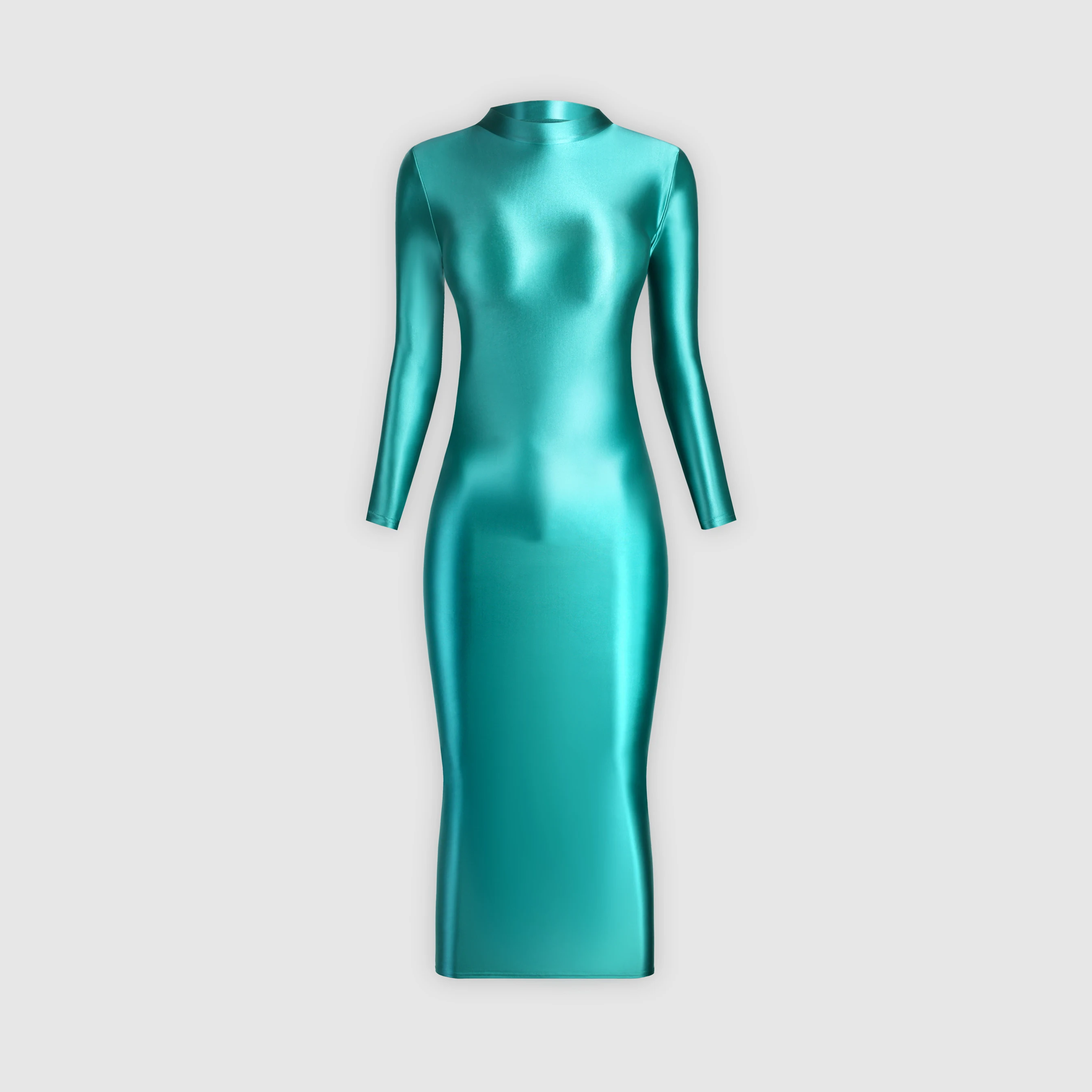 XCKNY Glossiness Series dress high neck long sleeve skirt silk longuette elastic silk tight skirt sports skirt sexy tight dress
